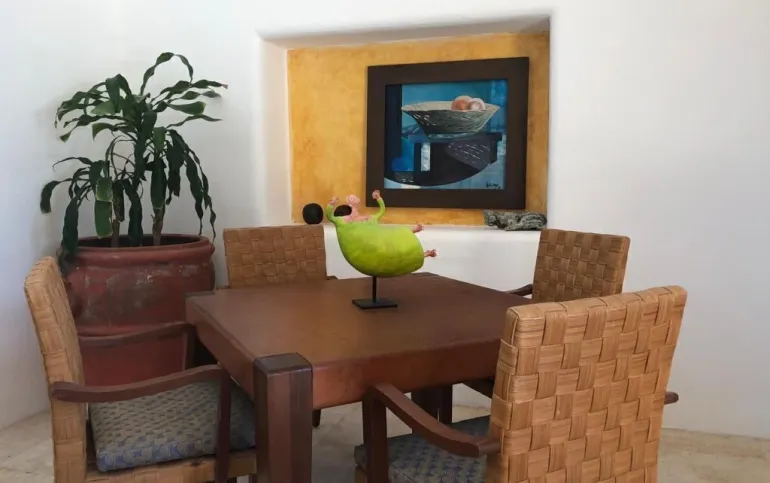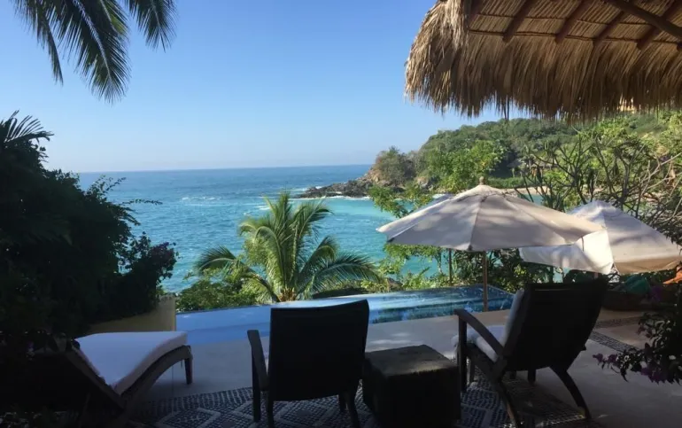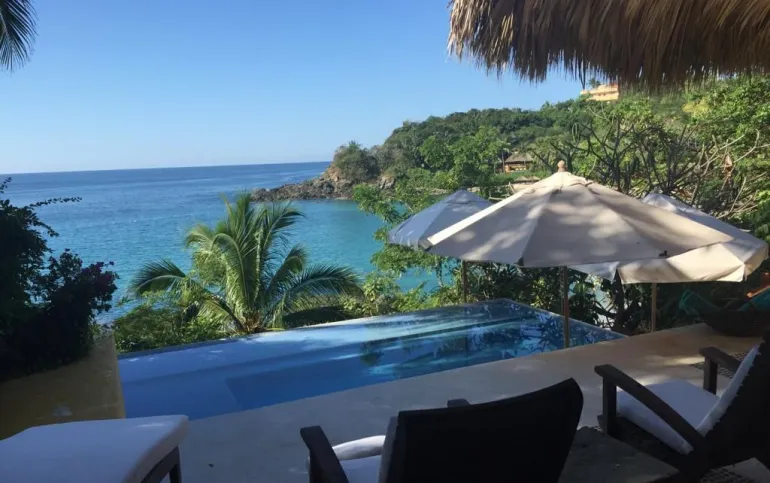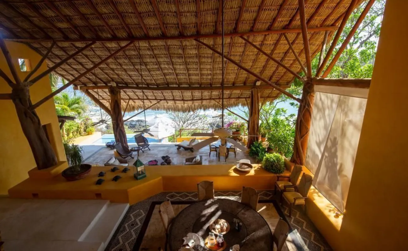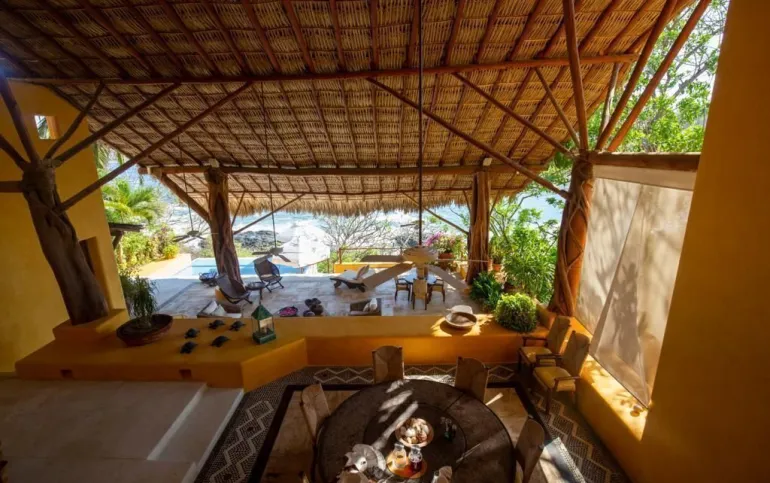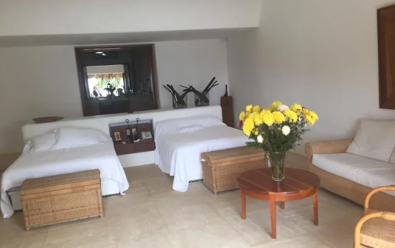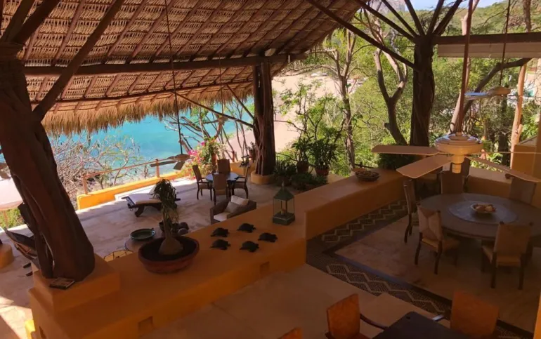 Casa con playa privada en el conjunto Arcano, uno de los lugares más exclusivos de Ixtapa. El Club de Arcano cuenta con Playa Privada, restaurante, alberca, andadores, un pequeño lago y canchas de tenis y de padel. El lugar donde se desarrolló Arcano está rodeado de naturaleza, espectacular flora y fauna. Arcano cuenta además con seguridad las 24 horas del día. La casa cuenta con una moderna palapa donde se encuentran la sala y el comedor, al lado esta la alberca, asoleadero y un baño completo. Tiene también. una sala con A/A con TV y mesa de juego. La recámara principal tiene doble baño, una salita y balcón con jacuzzi, y 3 recámaras adicionales cada una con su baño y dos camas matrimoniales. Al "Contactar" para consultar esta propiedad, estás aceptando los "Términos y Condiciones", y "Aviso de privacidad". Los precios publicados y la disponibilidad pueden cambiar sin previo aviso, por lo que se debe de verificar con la inmobiliaria y los propietarios de cada inmueble. Los gastos e impuestos de escrituración NO están incluidos en el costo de venta, así como el mobiliario, electrodomésticos y arte que se muestran en las fotografías. Este inmueble PUEDE ESTAR sujeto a adquisición por medio de un crédito hipotecario. En caso de que este inmueble se adquiera a través de un crédito, el precio variará de acuerdo con las tasas de interés aplicables a dicho crédito Y LO QUE EL CLIENTE ACEPTE DEL BANCO. Todas las medidas enunciadas son meramente orientativas, las medidas exactas serán las que se expresen en el respectivo título de propiedad de cada inmueble La publicación de la presente información NO representa una oferta pública por lo que toda transacción debe de hacerse de forma personal de acuerdo con las prácticas comerciales de la inmobiliaria y para poder ser valida requiere de la autorización expresa de los propietarios de los inmuebles. PRECIO EN USD AL TIPO DE CAMBIO QUE DICTE EL BANCO DE MÉXICO EL DÍA DE LA OPERACIÓN
