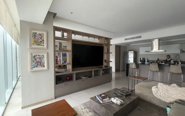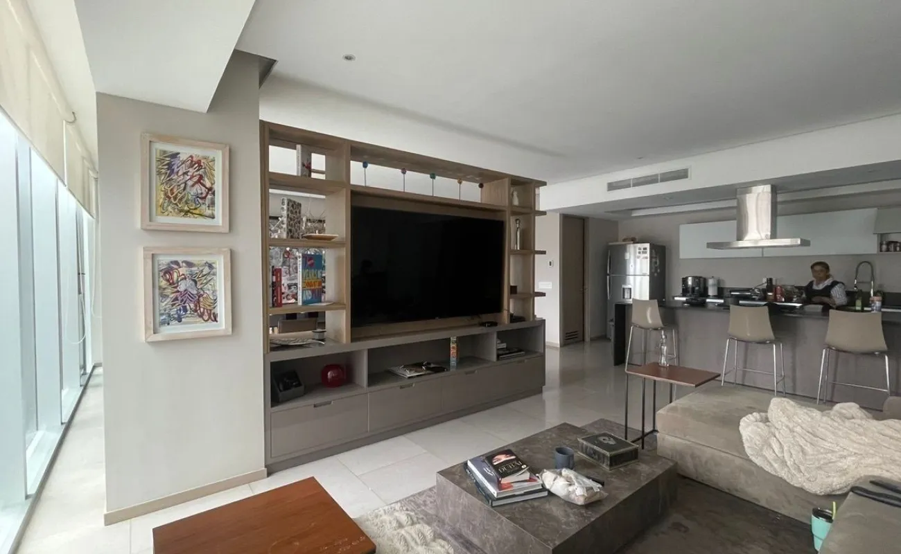 Departamento con 3 recámaras, 3 baños, 3 estacionamientos. cocina abierta. sala de TV, comedor y baño de visitas. cuarto de servicio.