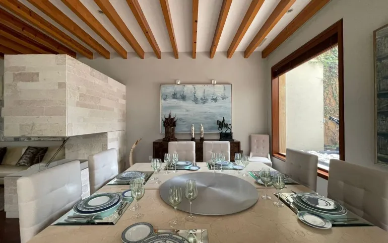 Increíble casa en renta amueblada en una de las mejores privadas de santa fe, con casa club, canchas de tenis, padel, alberca, etc. La casa esta dividida en 2 plantas, en la planta baja cuenta con calentador de piso.