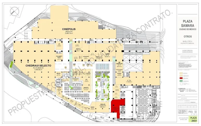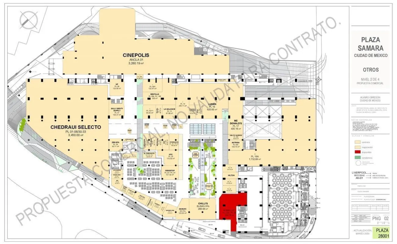 Amplio local de 1733 metros cuadrados en uno de los Centros más importantes de la Ciudad de México, Centro Comercial Plaza Samara.