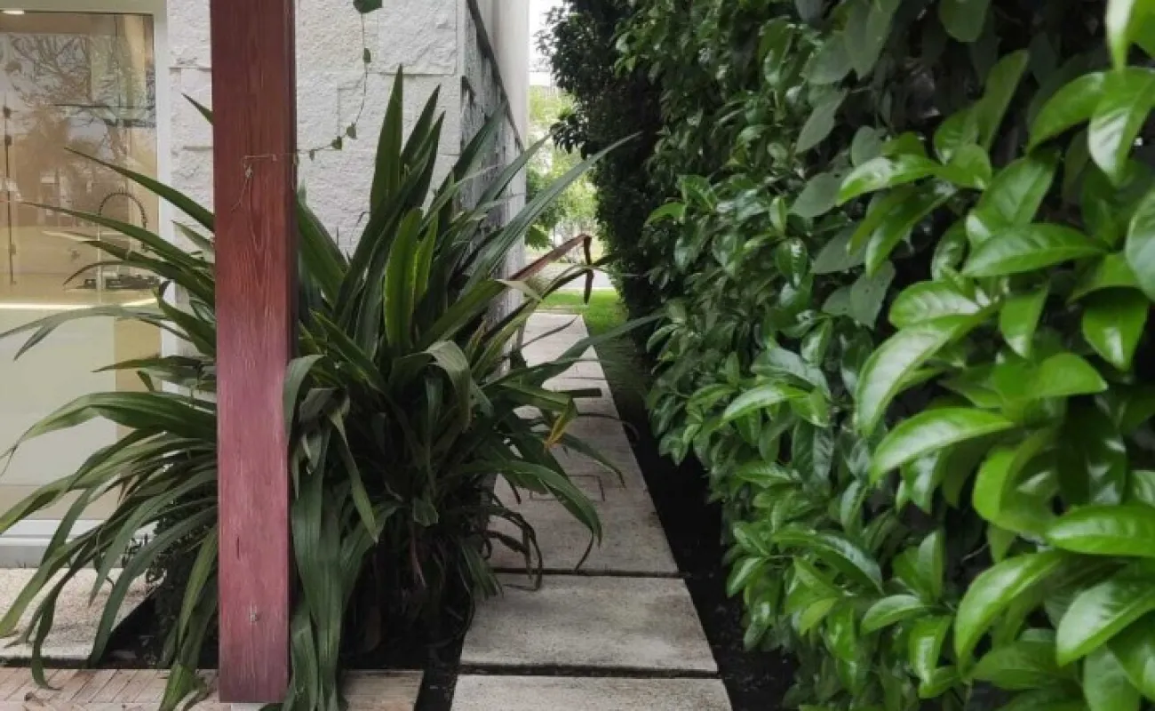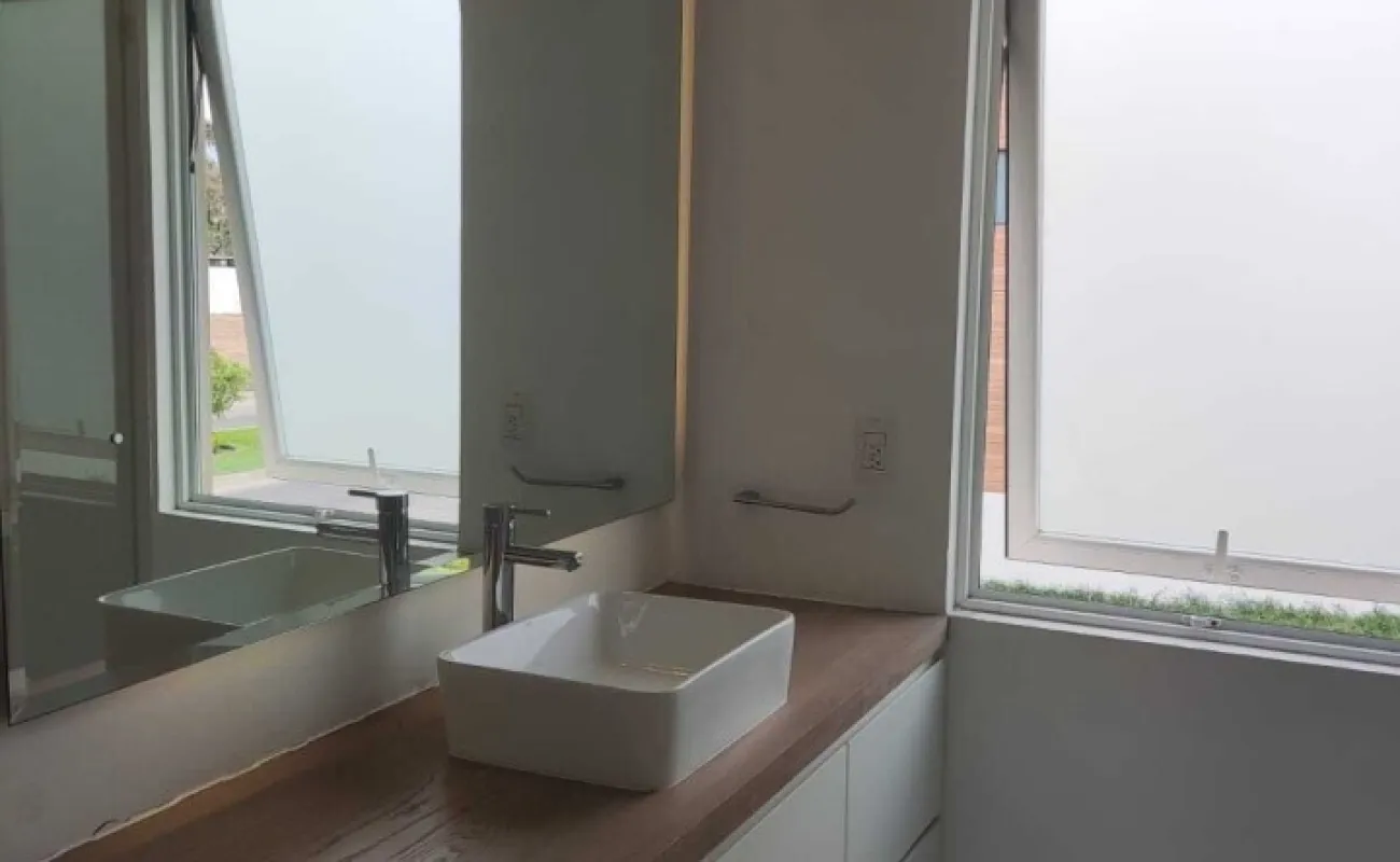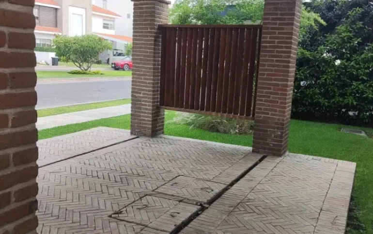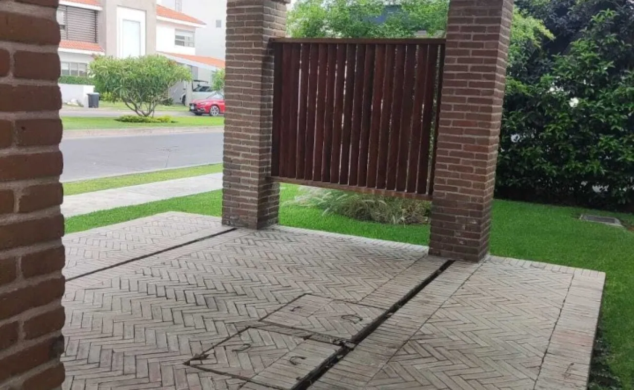 Estacionamiento techado para 3 autos, jardín con terraza, alberca de 6m x 6m y 1 de profundidad, 2 cisternas con hidroneumático, sistema de riego programable, bodega cerrada y mueble de almacenamiento.