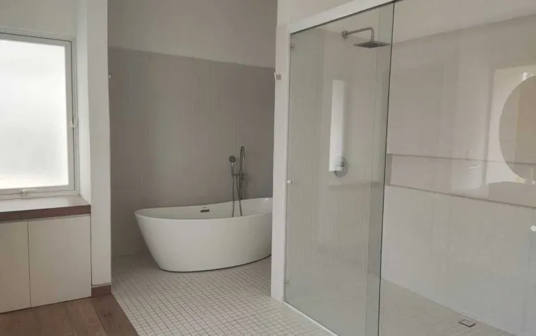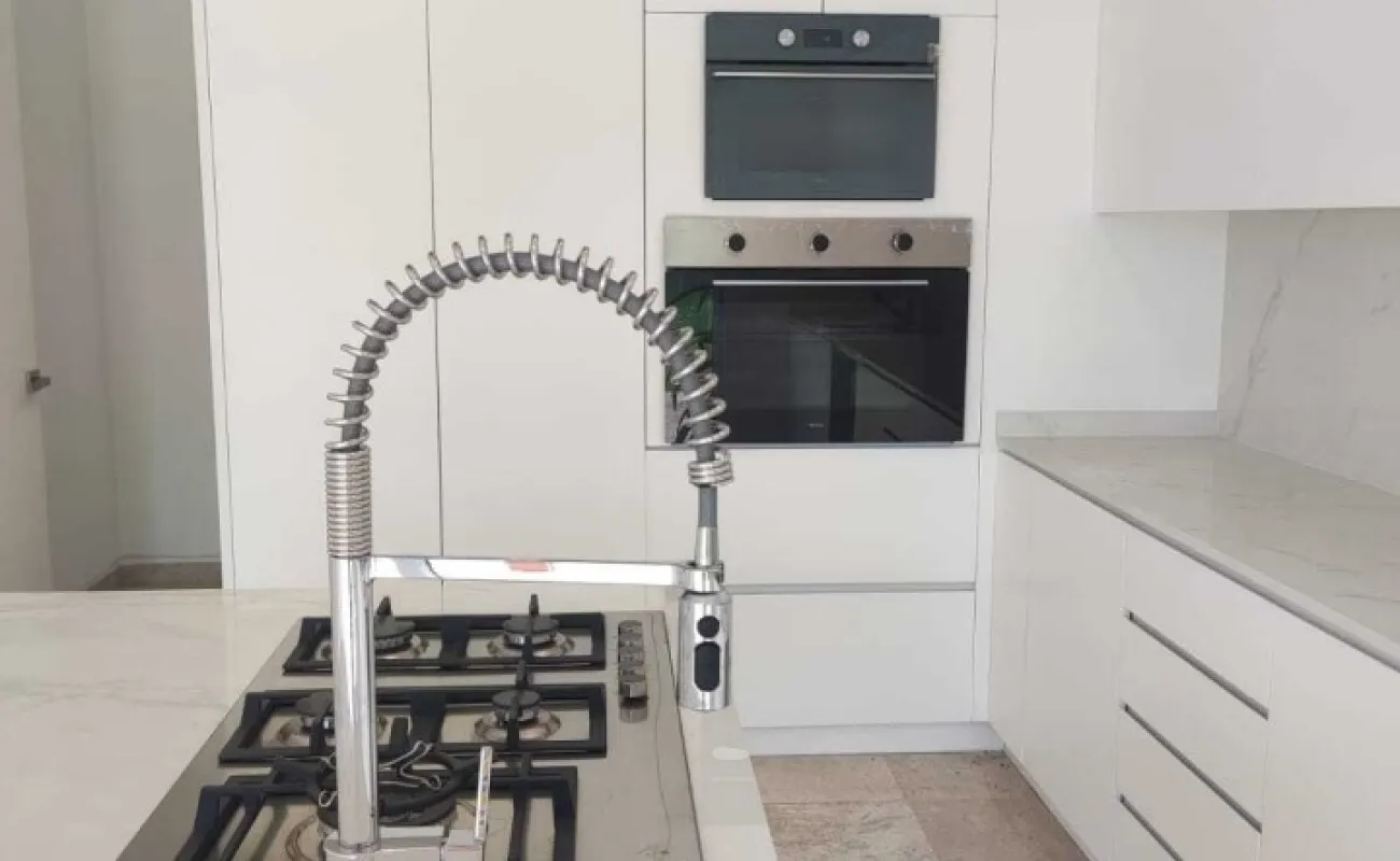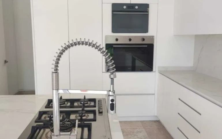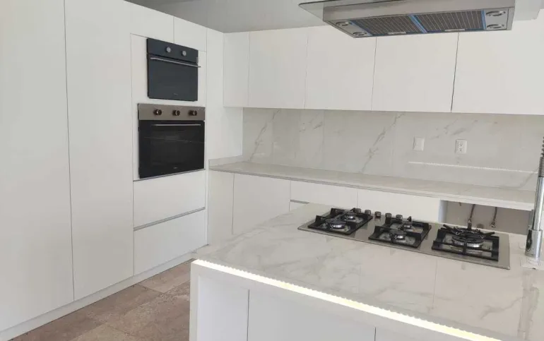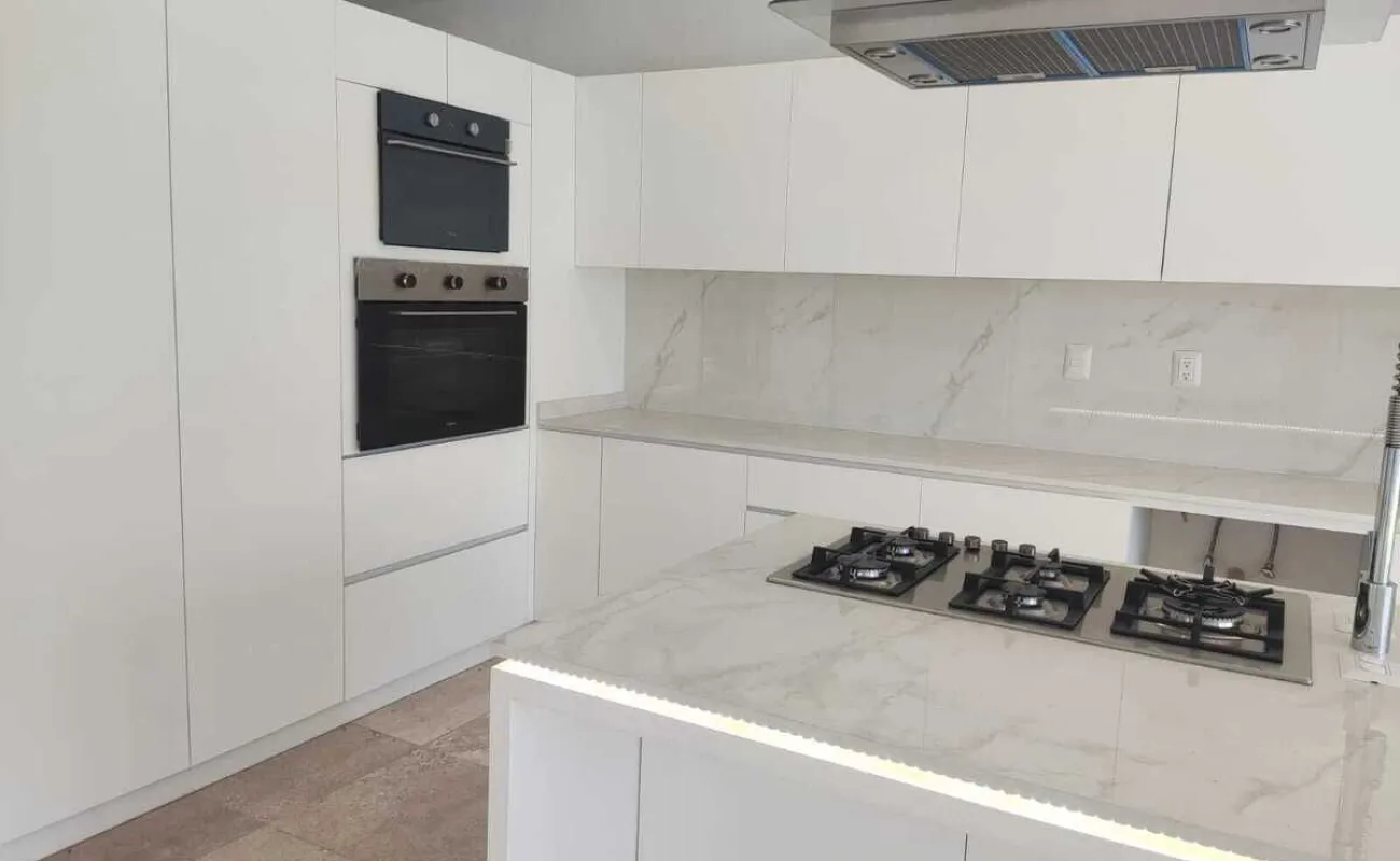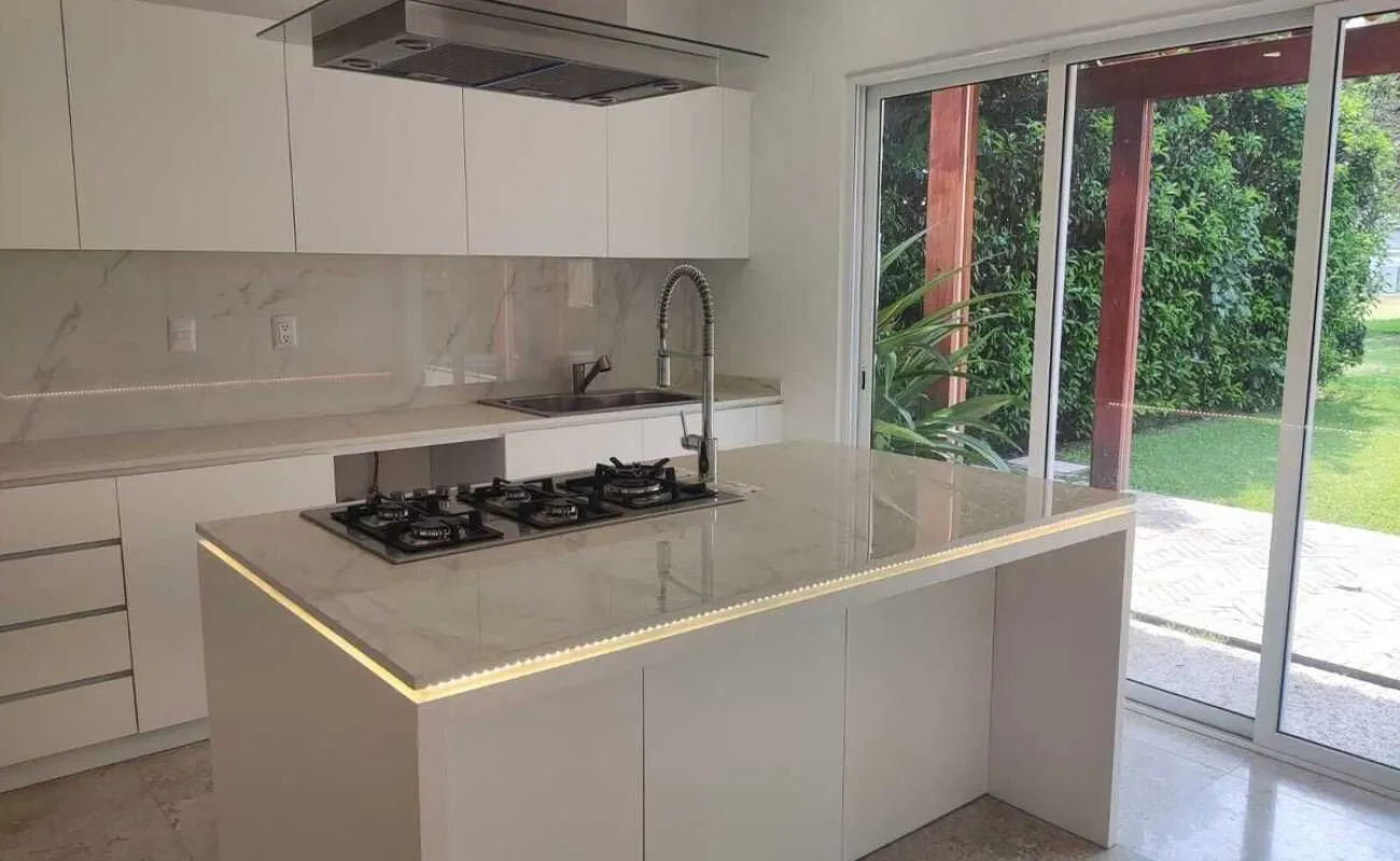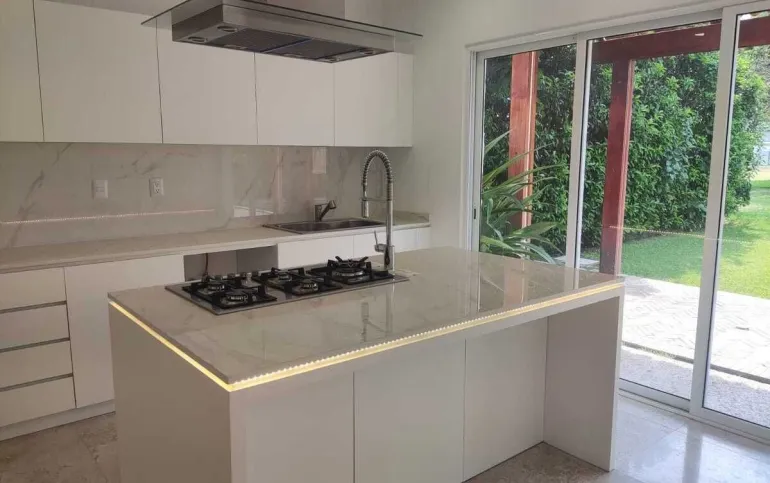 Todo el piso de la casa es de mármol travertino.