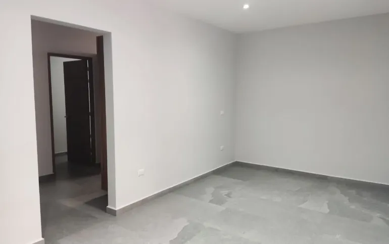 Sala-comedor con techo de doble altura, cocina equipada, barra de granito. Medio baño, recamara con vestidor y baño completo con cancel.