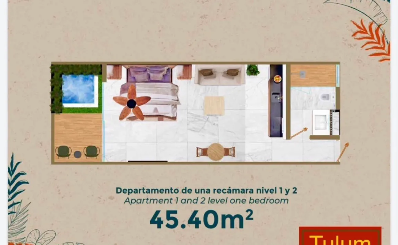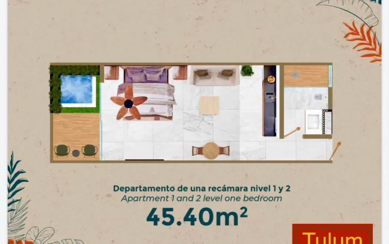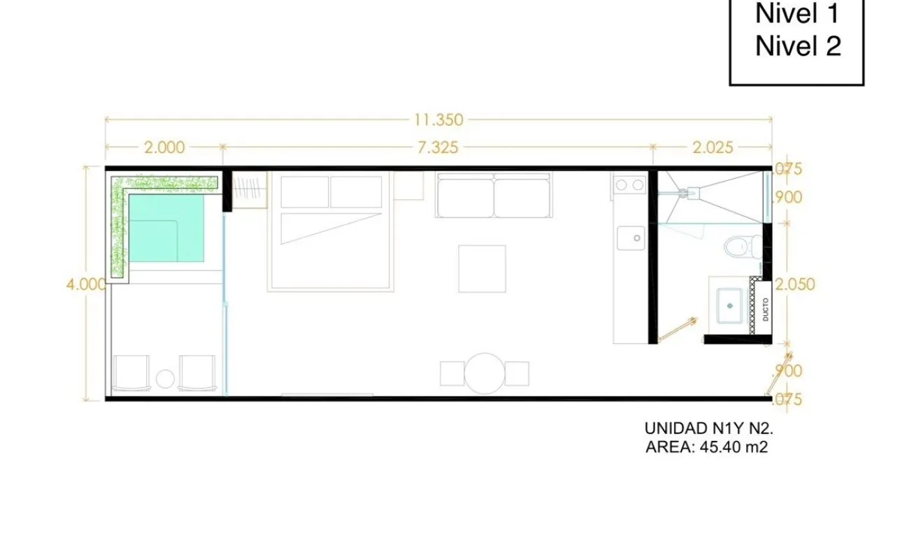 Piso 1 • 35 Unidades de 45.4m2, con Jacuzzi