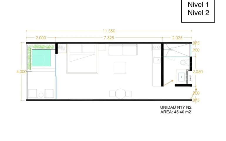 Piso 2 • 35 Unidades de 45.4m2, con Jacuzzi
