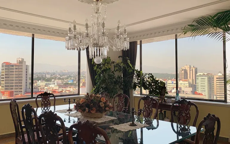Depto de lujo! muy bien distribuido superficie 370m con amplia sala comedor y family antecomedor, elevador directo al piso 10, hermosa vista a polanco y lomas casi 360o con mucha luz natural, acabados de lujo, 3 recámaras con su baño y vestidor, y oficina independiente. Cocina cerrada super amplia con area de lavanderia y cuarto de servicio completo.