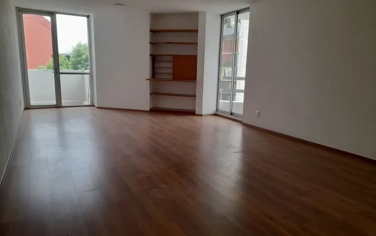 Departamento muy iluminado, amplios espacios, muy bien conservado, en excelente ubicación con acceso rápido a Río Mixcoac y a Av. Universidad a dos cuadras de Mitikah, amplia estancia con dos balcones, cocina cerrada integral nueva, recámara principal con vestidor y baño, recámaras secundarias con closets y comparten baño.