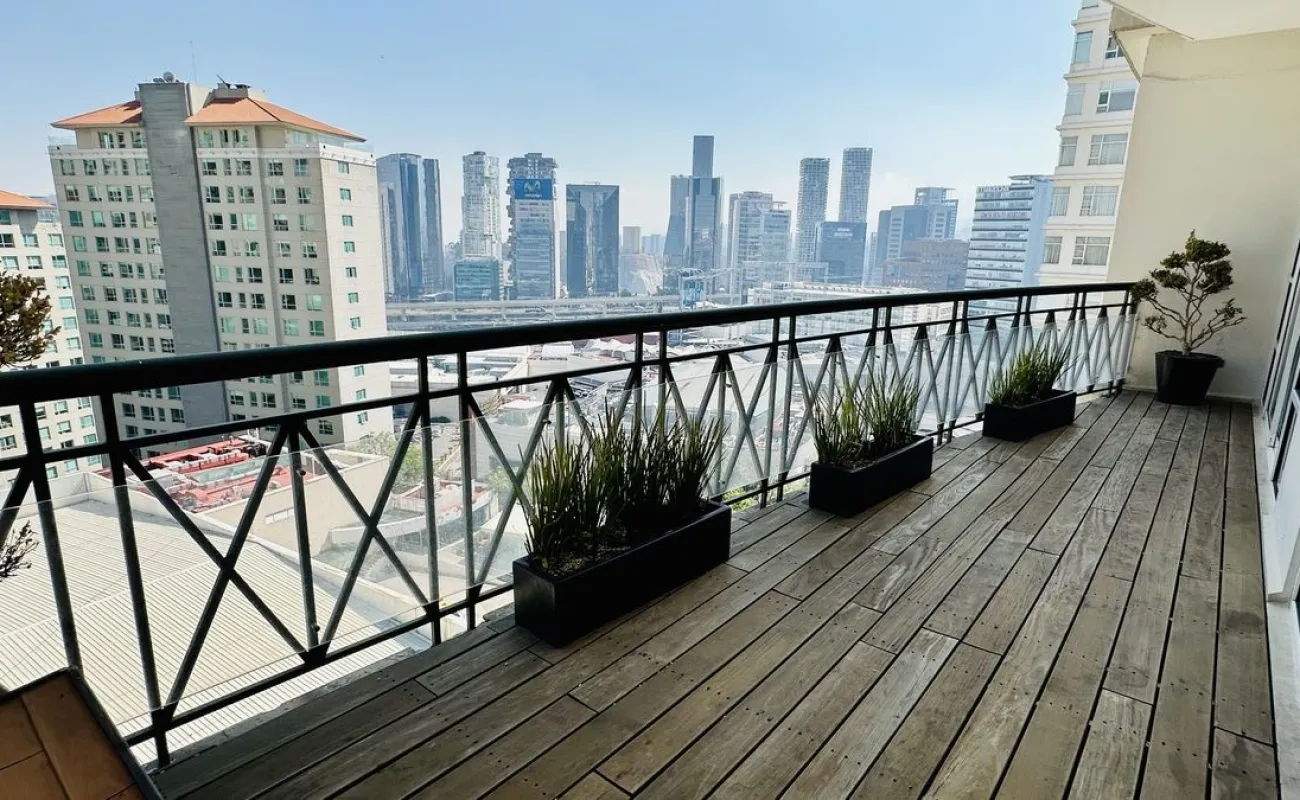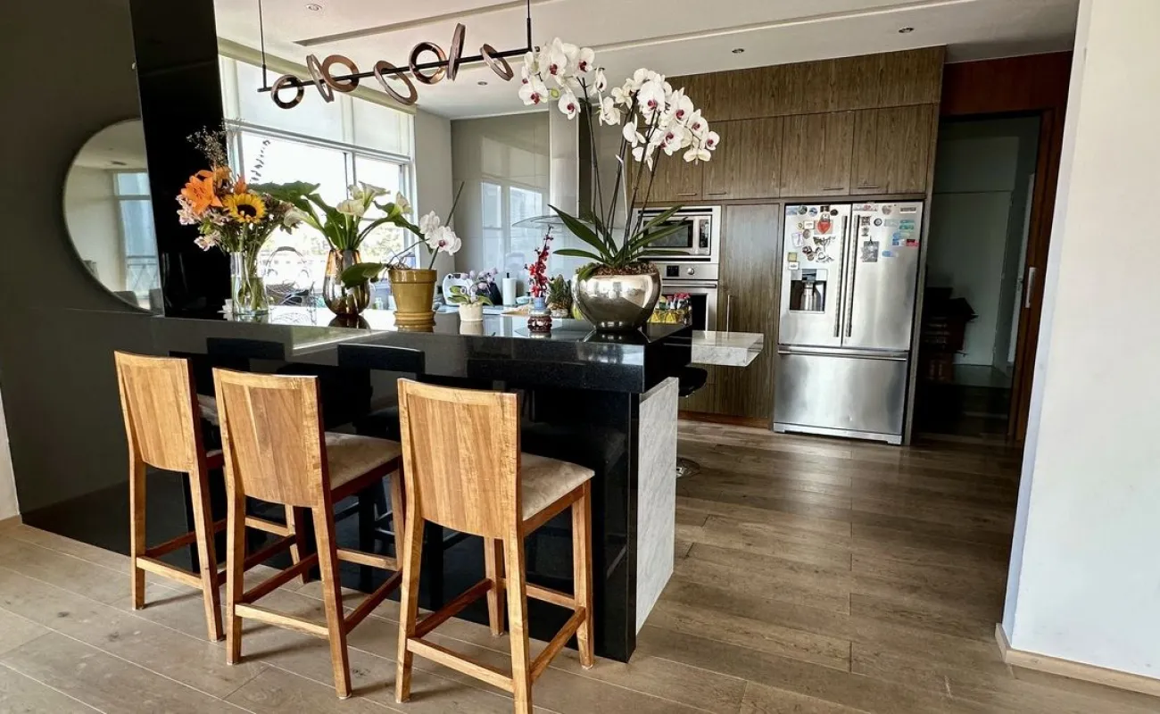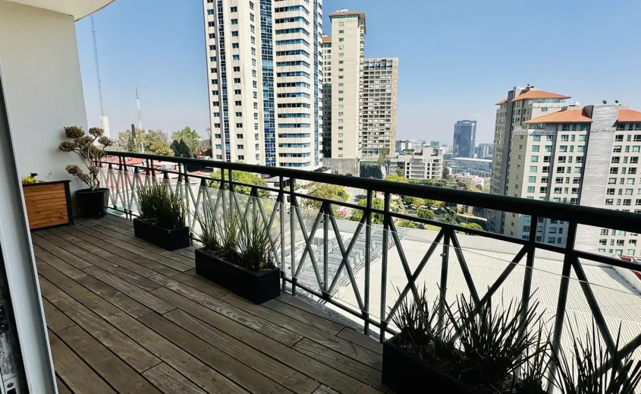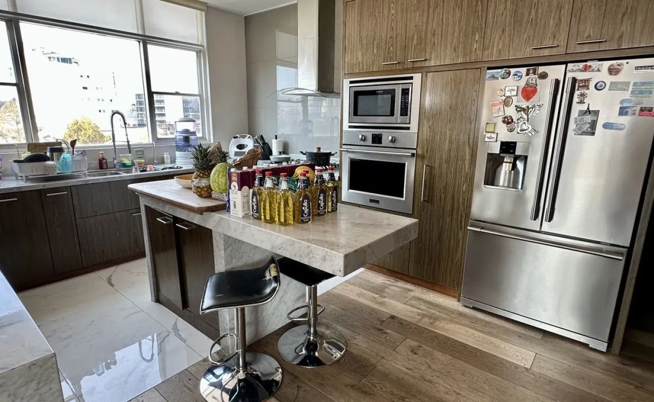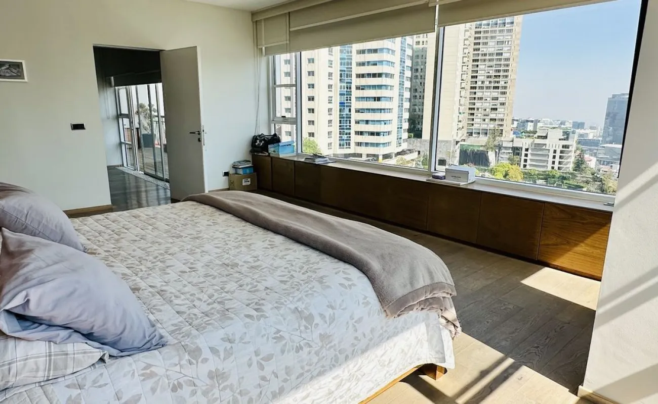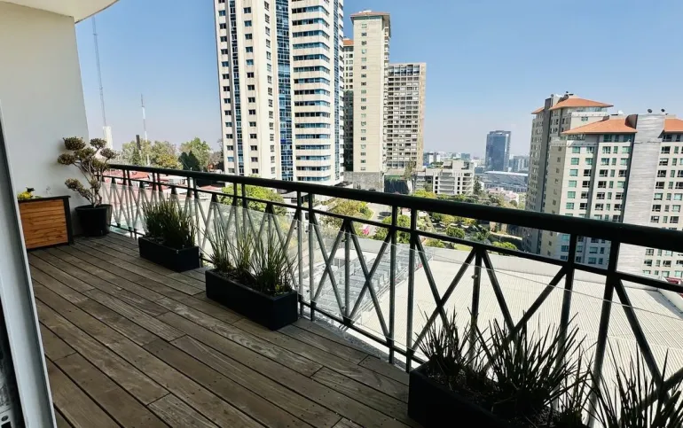 Vive con lujo, confort y una ubicación inmejorable en este espectacular departamento, completamente remodelado y actualizado, ubicado frente al Centro Comercial Santa Fe. El departamento cuenta con 3 recamaras cada una con vestidor y baño completo, una de las secundarias con acceso a terraza; family room de buen tamaño con salida a terraza; espacio de sala y comedor muy amplio con acceso a terraza principal; cocina abierta integral y equipada; medio baño de visitas; cuarto de servicio y área de lavandería; 3 lugares de estacionamiento y bodega; el elevador es directo al departamento. Todo el departamento cuenta con excelente iluminación natural, grandes espacios y acabados de lujo.