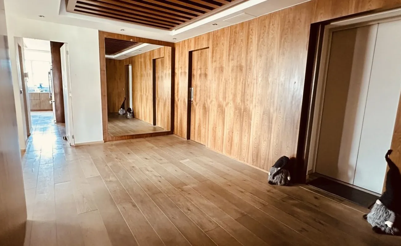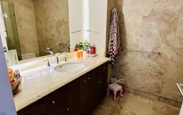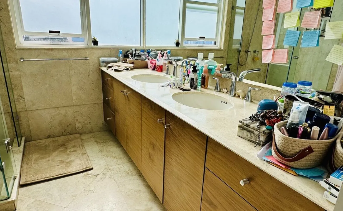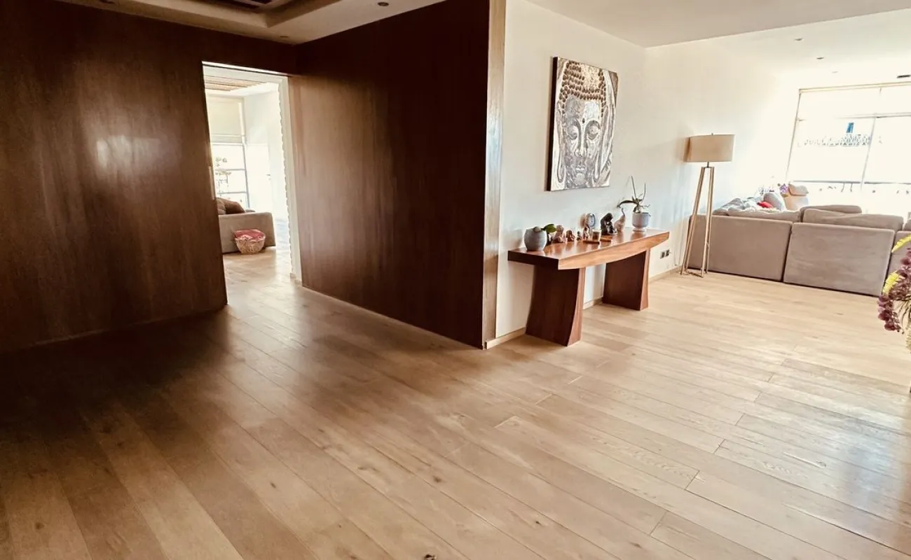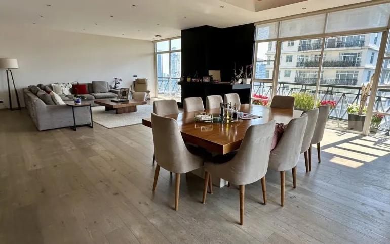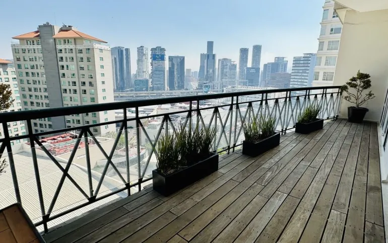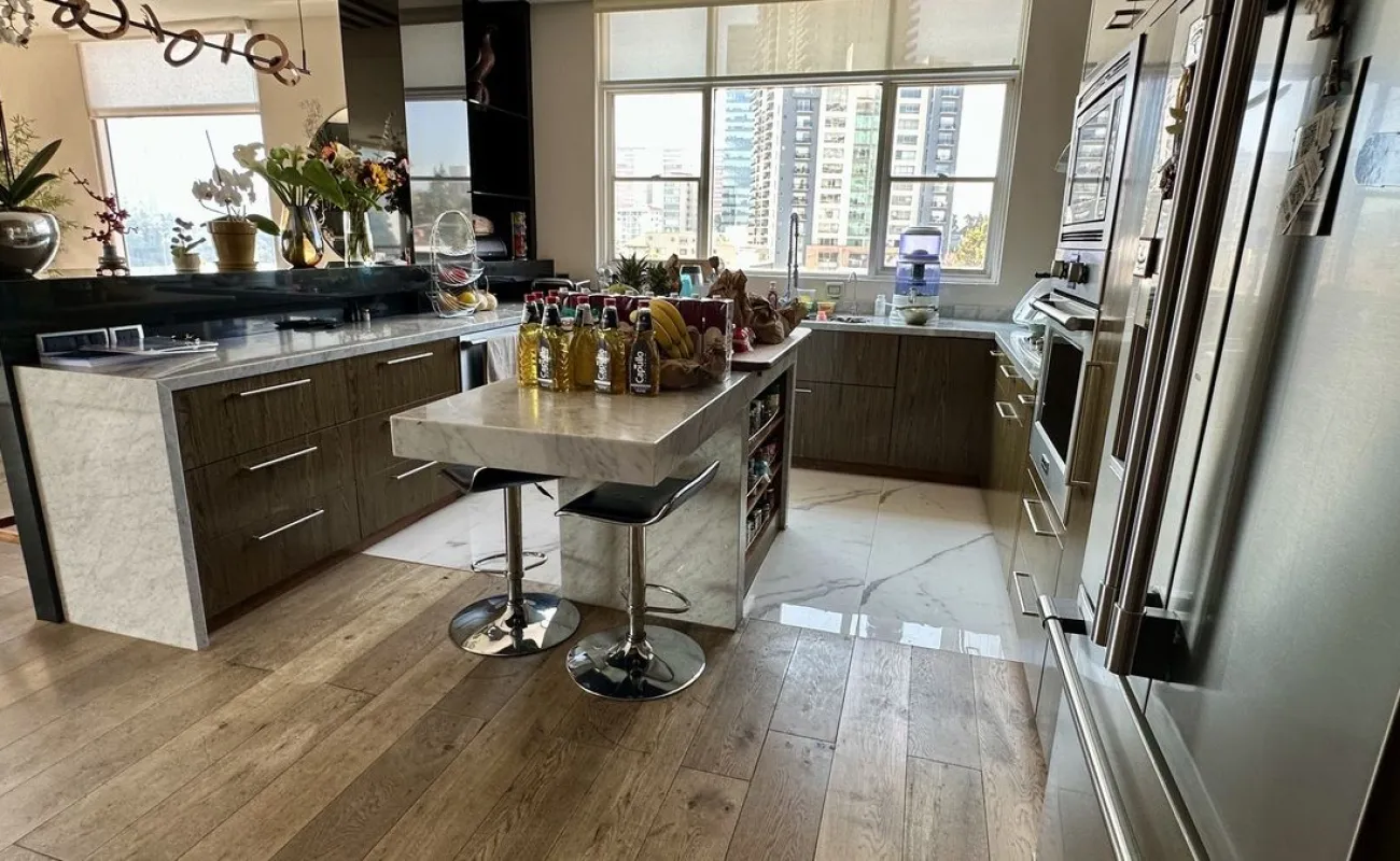 Vive con lujo, confort y una ubicación inmejorable en este espectacular departamento, completamente remodelado y actualizado, ubicado frente al Centro Comercial Santa Fe. El departamento cuenta con 3 recamaras cada una con vestidor y baño completo, una de las secundarias con acceso a terraza; family room de buen tamaño con salida a terraza; espacio de sala y comedor muy amplio con acceso a terraza principal; cocina abierta integral y equipada; medio baño de visitas; cuarto de servicio y área de lavandería; 3 lugares de estacionamiento y bodega; el elevador es directo al departamento. Todo el departamento cuenta con excelente iluminación natural, grandes espacios y acabados de lujo.