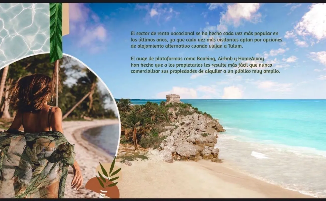 Tulum ha experimentado un rápido crecimiento tanto nacional como internacional en los últimos años, ahora con aeropuerto propio a 15 minutos, lo catapulta como uno de los principales destinos turísticos en el mercado internacional, esto ha dado lugar a un interesante modelo de negocio conocido como “Renta Vacacional”, el cual permite a los inversionistas recuperar sus inversiones en el menor tiempo posible.