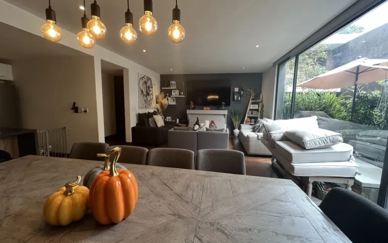 HERMOSO DEPARTAMENTO GARDEN HOUSE EN VENTA EN OLIVAR DE LOS PADRES!!! Departamento Garden en 1er piso en venta , se encuentra en un hermoso desarrollo , cuenta con sala y comedor muy amplios que dan a una hermosa terraza de 10 m2. La cocina es abierta con una barra muy funcional y excelentes acabados. Tiene un pasillo en el cual está el medio baño de visitas, un amplio family room, y al final se encuentran las 3 recámaras con baño completo cada una, la principal con vestidor y las secundarias con closets. Además tiene un lindo jardín con terraza de 30 m2 . Tiene 4 amplios lugares de estacionamiento techados, cuarto de servicio con baño, área de lavado y bodega. Seguridad 24/7 Y como amenidades un gran jardín común, salón de usos múltiples, ludoteca, gimnasio y sky bar (salón de adultos con barra, tele, sala, mesas y jacuzzi ). Hay lugares de estacionamiento para visitas. Mantenimiento mensual $4500 VEN A CONOCERLO!! TE VA A ENCANTAR!!!