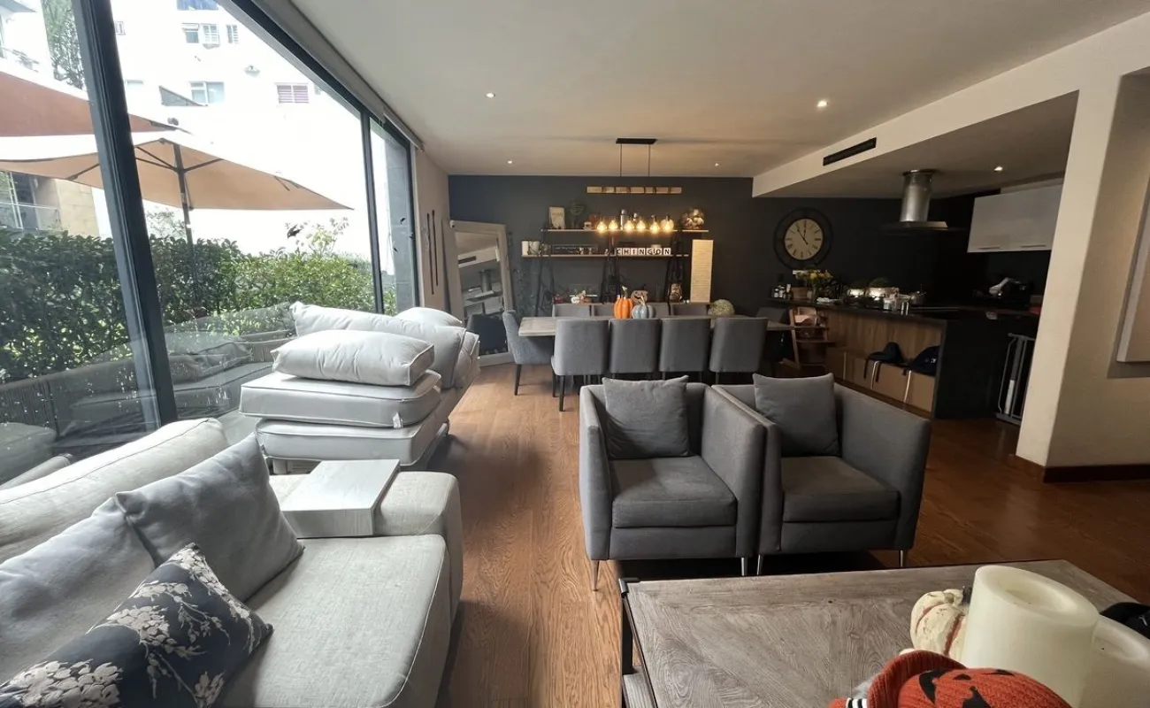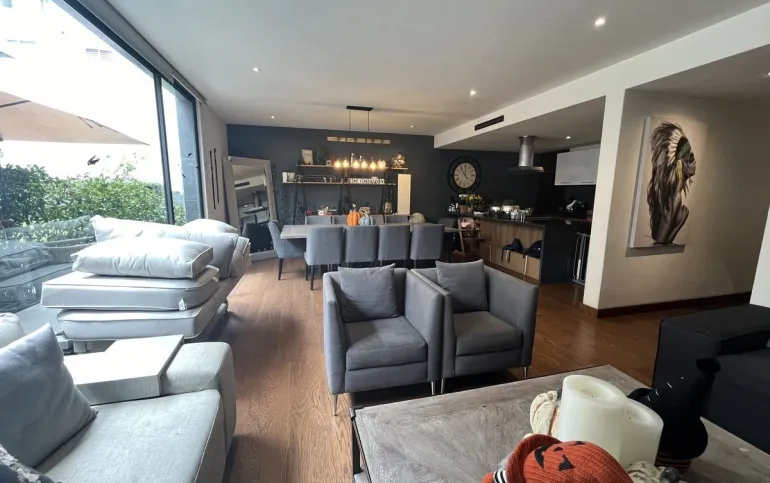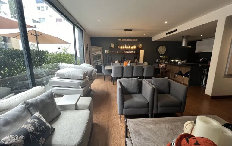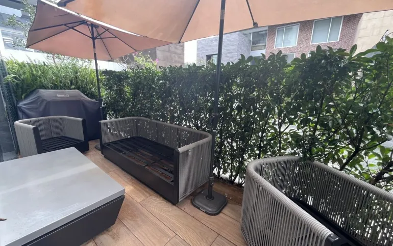 Departamento Garden en 1er piso en venta , se encuentra en un hermoso desarrollo , cuenta con sala y comedor muy amplios que dan a una hermosa terraza de 10 m2. La cocina es abierta con una barra muy funcional y excelentes acabados.
