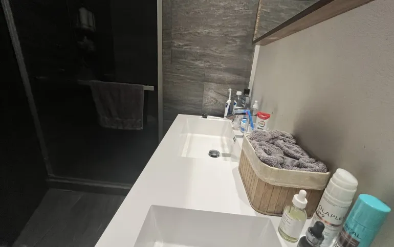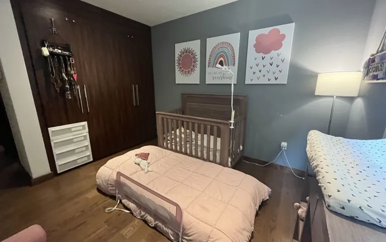 Tiene un pasillo en el cual está el medio baño de visitas, un amplio family room, y al final se encuentran las 3 recámaras con baño completo cada una, la principal con vestidor y las secundarias con closets.