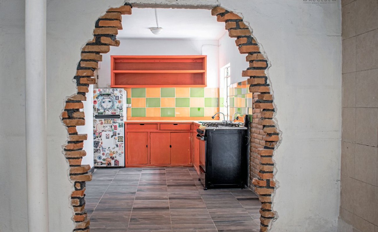 Cocina abierta, ventilada y con área contigua para un antecomedor o una generosa área de lavado