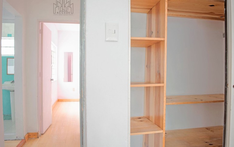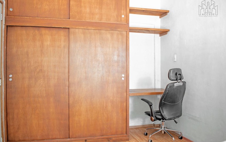 Tiene 3 recámaras, una está al lado de la estancia, por lo que puede ser estudio; tiene un espacio de trabajo junto al clóset.