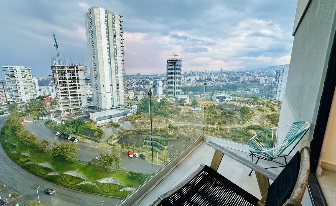 Este increíble departamento destaca por su excelente estado, distribución funcional y una vista única a diferentes puntos de Bosque Real. Cuenta con 3 recamaras; la principal con vestidor, clóset y baño completo, las secundarias con closet y comparten baño; espacio de sala y comedor de buen tamaño con acceso a terraza privada; medio baño de visitas; family room, cocina abierta integral equipada y espacio para desayunador, área de lavandería y cuarto de servicio completo. 2 lugares de estacionamiento y bodega. Excelente iluminación natural y ventilación, además de vistas panorámicas a Bosque Real.