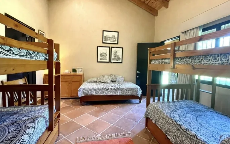 Tiene una casa adicional (bungalow) que tiene sala-comedor, cocineta, dos recámaras con walk in closet y baño completo.
