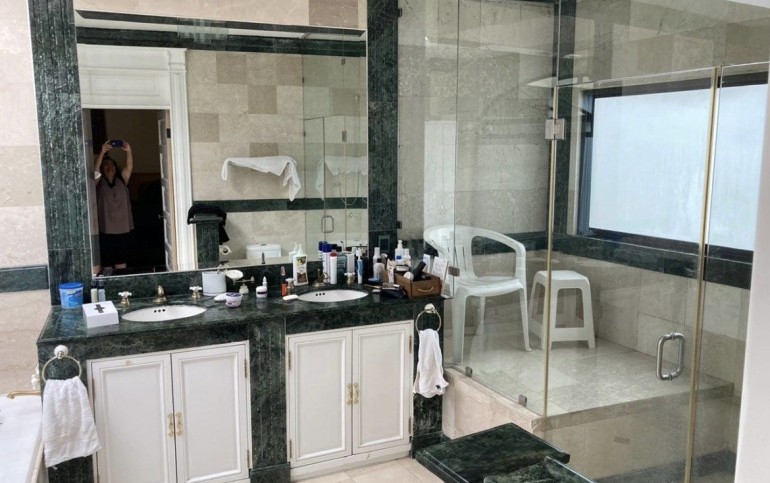 En el piso inferior tiene un salón de juegos con baño, cantina y cava. También el cuarto de servicio con baño, lavandería y patio de secado.