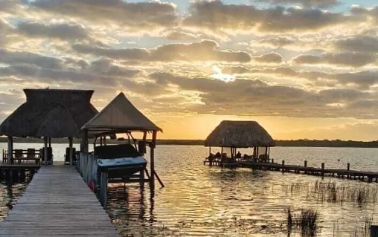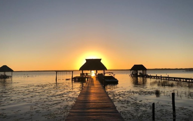 Beautiful house by the Bacalar Lagoon front on a ~2000 squared meter property with 4 bedrooms and 4.5 bathrooms. Fully equipped kitchen with an 8 people dining room, and a spacious living-room with dedicated spaces for a desk and breakfast table. Enough garage space for 6 cars. There are 2 roofed terraces, one on the front on the house, and the second one by the side of the house, over the garden. Rooms: - Master Suite (2nd floor): Queen-size bed with private bathroom, walk-in closed and a 65 squared meter private terrace. - 2nd room (2nd floor): King-size bed, private bathroom, closet, private terrace. - 3rd room (ground floor): King-size bed, private bathroom, closet, and direct access to the garden and terrace. - 4th room (ground floor): independent structure just a couple feet outside the house towards the lagoon. King size bed, private bathroom, and private terrace outlooking to the lagoon. Garden: There’s a 800 squared meter garden with direct access to the lagoon and a small sailboat dock. Peer: The 50 meter long peer gives people the opportunity to enjoy a 70 squared meter covered deck and swing set over the lagoon at the end, and has its very own boat elevator. There are 3 more small houses within the property. 1. One brand new 70 squared meter house with one bedroom, one bathroom, private terrace and independent street access; perfect for renting. 2. The second one includes the one-bedroom housekeeper’s house, with laundry room and access to the inside of the property. 3. Small one-bedroom fully-equipped apartment with independent street access. YES GO AND SEE IT!!!!! CONOCELA!!!