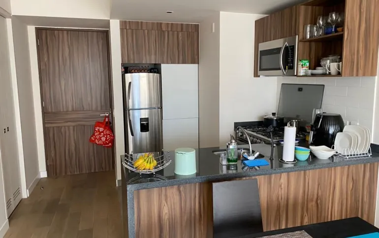 Increíble departamento totalmente amueblado, equipado y acabados de primera; con gran orientación, iluminación y vistas espectaculares. Cuenta con una recamara con cama king size con vestidor, baño completo, sala de muy buen tamaño, cocina abierta integral equipada, área de lavado con centro de lavado, balcón, dos lugares de estacionamiento y bodega.