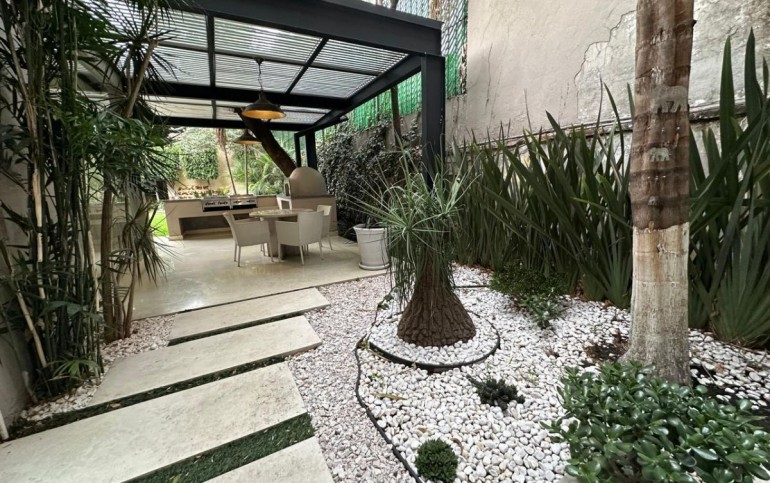 El gran y frondoso jardín es un oasis de tranquilidad, perfecto para disfrutar del aire libre. La terraza, equipada con un horno de pizza, es ideal para reuniones sociales y momentos inolvidables con amigos y familiares. Aquí, la vida familiar se enriquece con espacios pensados para la convivencia y el disfrute, haciendo de esta casa en la colonia Florida un hogar verdaderamente excepcional.