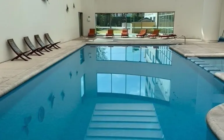 Alberca techada, cine, asadores, salón de usos múltiples, canchas de paddle y tenis, jardín con juegos infantiles, asadores, salón para adultos