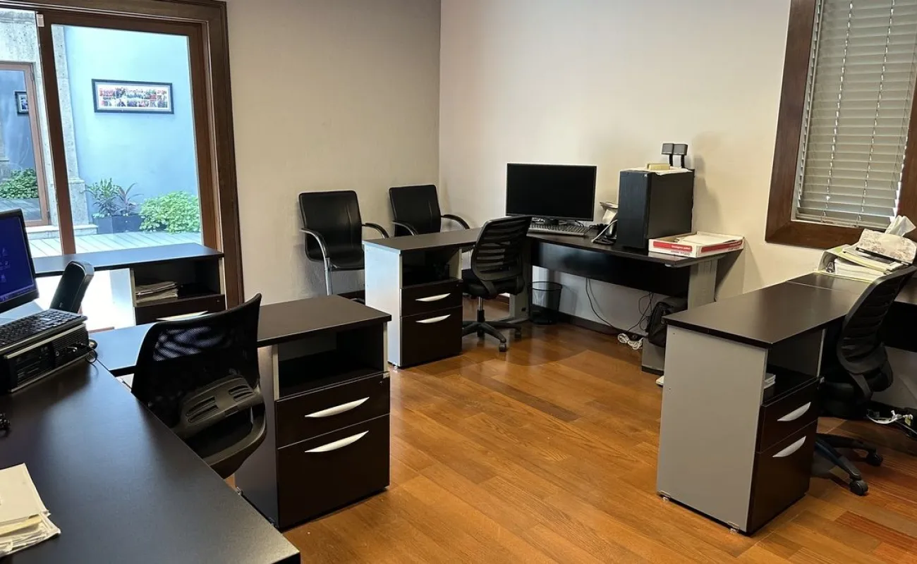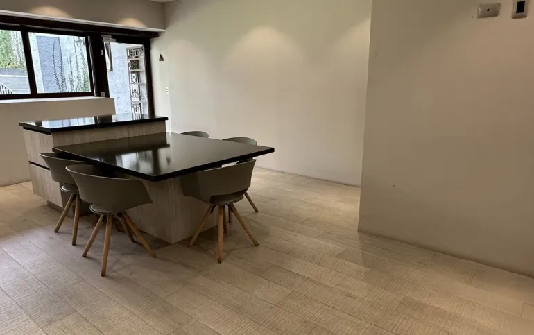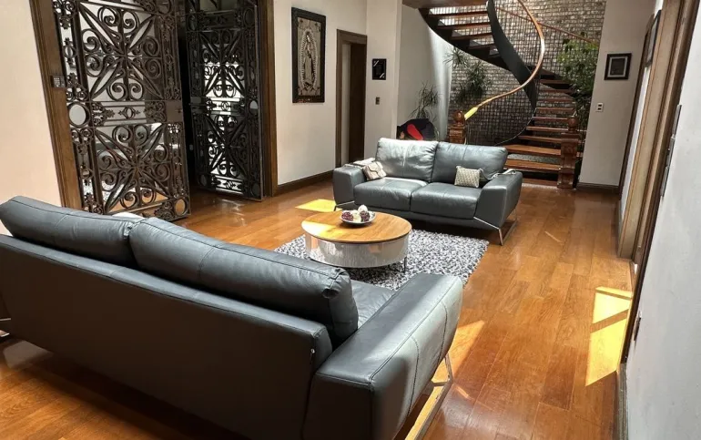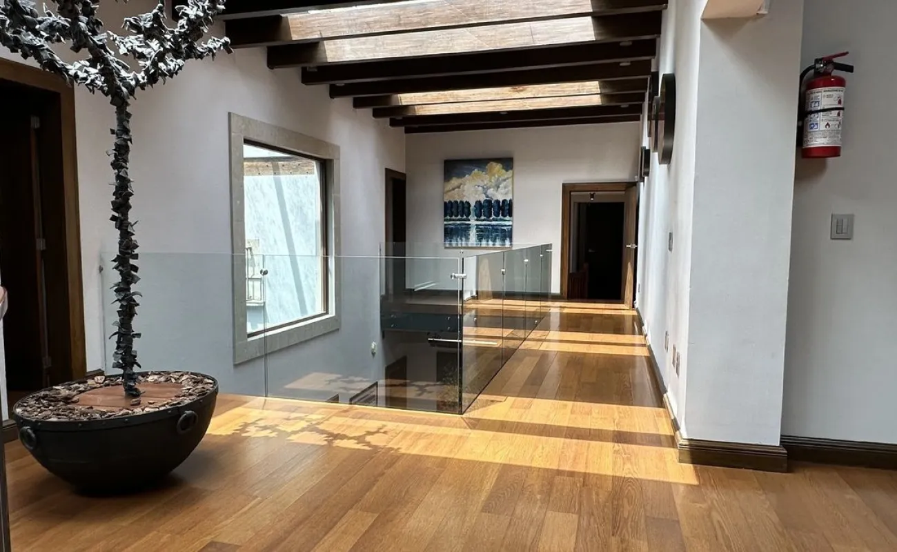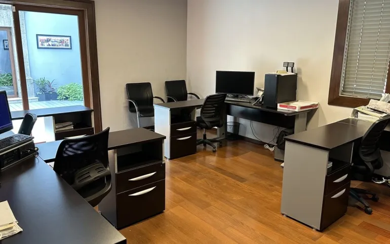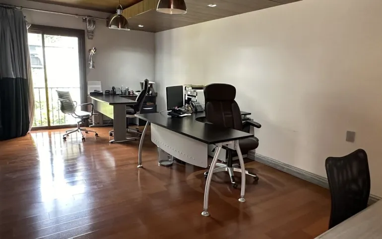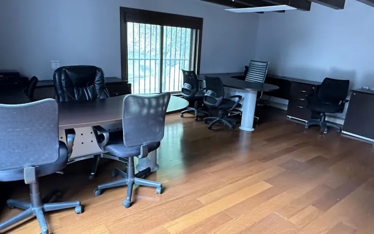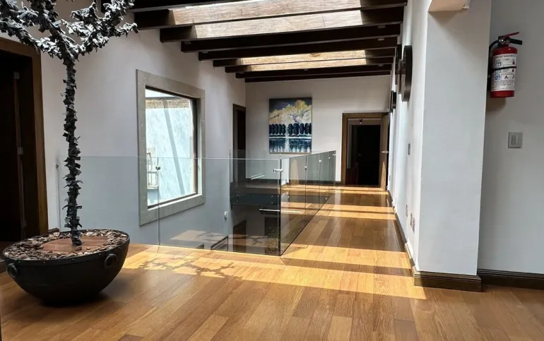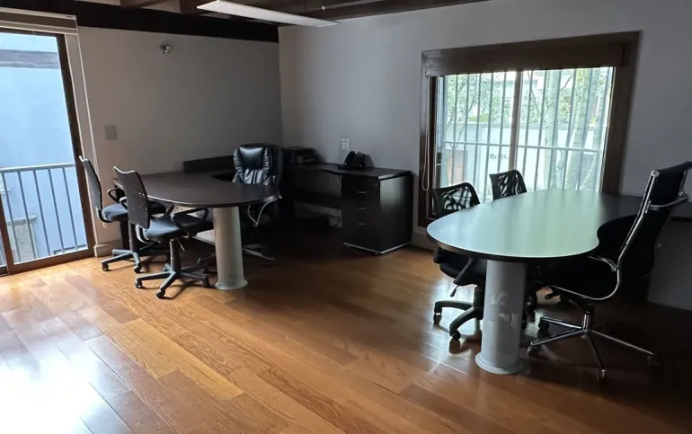 Increíble casa para oficina con acabado de lujo y excelente ubicación en la zona mas exclusiva de Bosques de las Lomas a tan solo 5 min de Arcos Bosques, amueblada, equipada con mobiliario de primera y decorada lista para entrar. Con acceso por por avenida principal y calle posterior. Cuenta con privados, salas de juntas, áreas de trabajo diversas, recepción, cocina, terraza con pérgola equipada con asador y sala, jardín, caseta de vigilancia, esclusa tipo bancaria en acceso peatonal, cuarto para choferes y vigilantes completos con cocineta, estacionamiento privado para 6 autos, cisterna, circuito cerrado de videovigilancia.