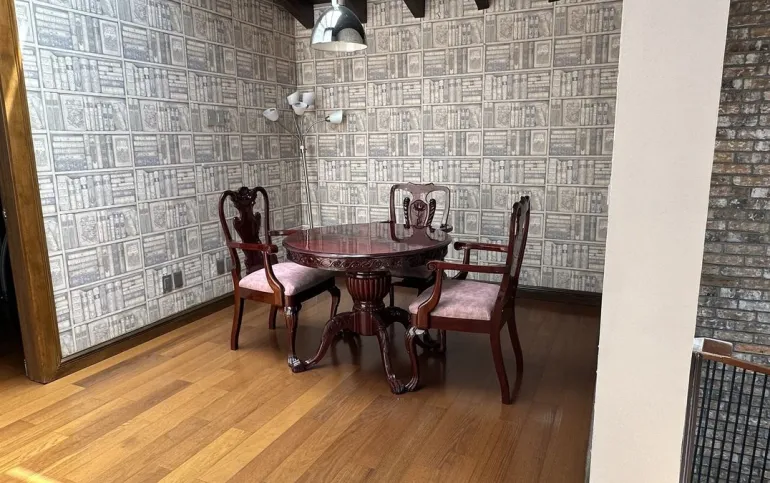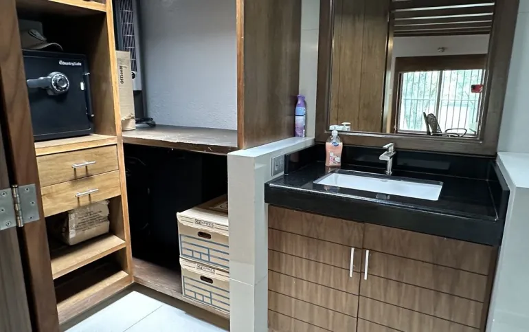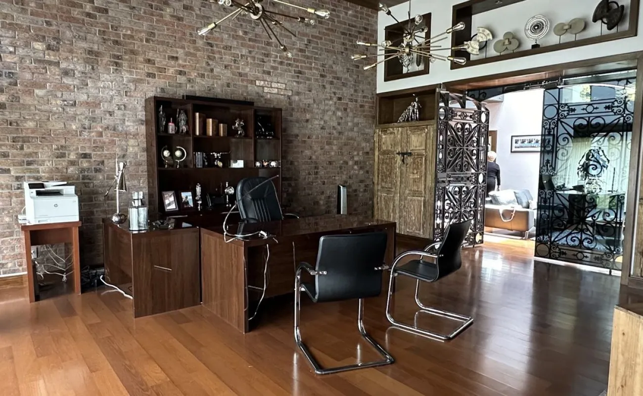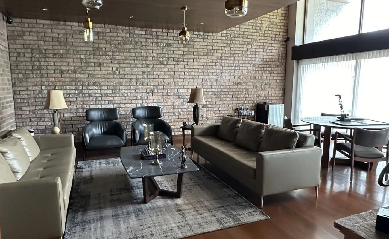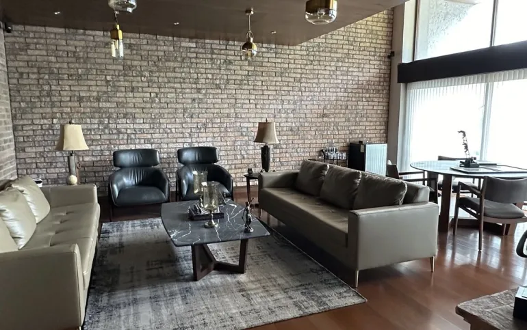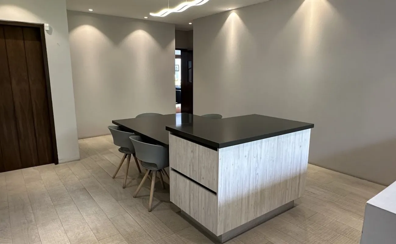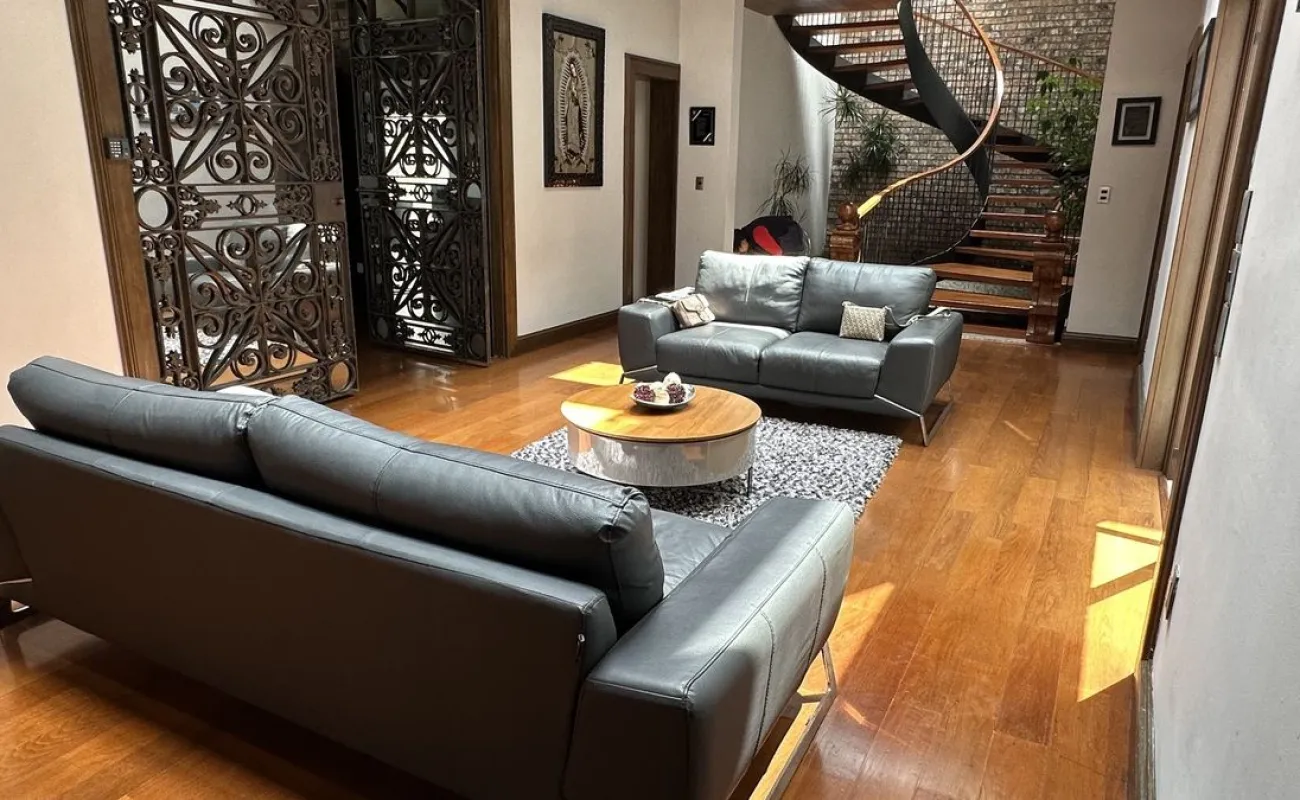 Increíble casa para oficina con acabado de lujo y excelente ubicación en la zona mas exclusiva de Bosques de las Lomas a tan solo 5 min de Arcos Bosques, amueblada, equipada con mobiliario de primera y decorada lista para entrar. Con acceso por por avenida principal y calle posterior. Cuenta con privados, salas de juntas, áreas de trabajo diversas, recepción, cocina, terraza con pérgola equipada con asador y sala, jardín, caseta de vigilancia, esclusa tipo bancaria en acceso peatonal, cuarto para choferes y vigilantes completos con cocineta, estacionamiento privado para 6 autos, cisterna, circuito cerrado de videovigilancia.