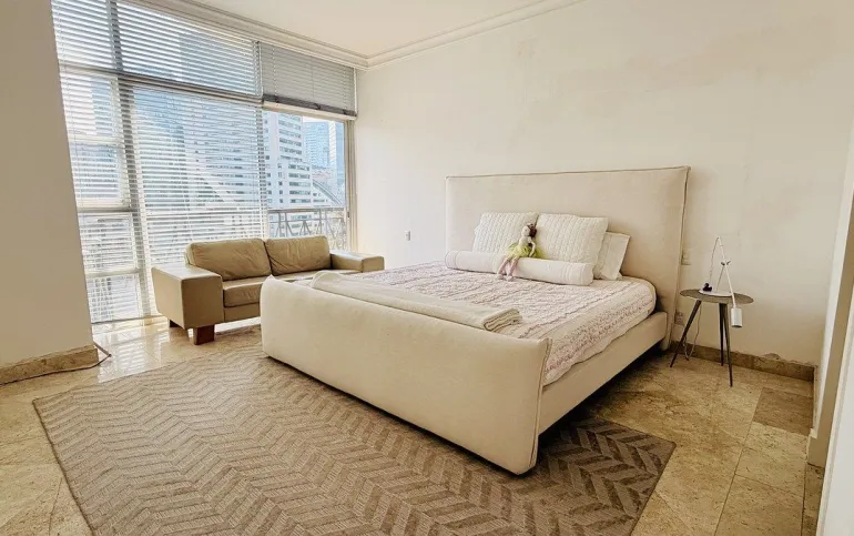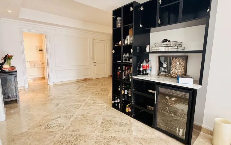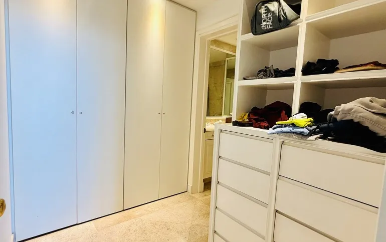 Este espectacular departamento cuenta con 3 recámaras cada una con vestidor y baño completo, una de las recamaras secundarias con acceso a terraza principal y la otra recamara secundaria con acceso a terraza secundaria; family room muy amplio con salida a terraza; espacio de sala y comedor independientes, ambos de gran tamaño y con acceso a terraza principal; elegante recibidor; elevador con acceso directo al departamento; cocina integral equipada de excelente tamaño con espacio para desayunador; área de lavandería; cuarto de servicio completo. 3 lugares de estacionamiento y bodega. Todo el departamento cuenta con excelente iluminación y ventilación natural, espacios verdaderamente amplios en cada área y vistas espectaculares a Santa fe.