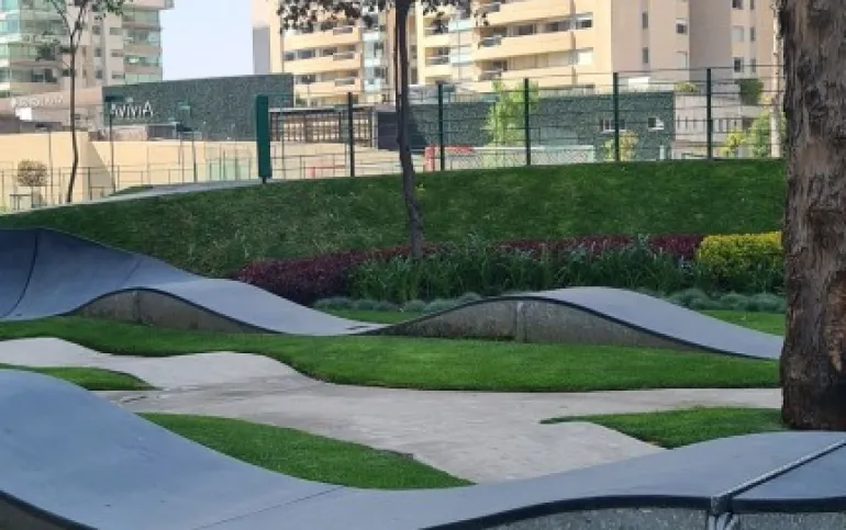 Parque con granja, pista para bicicletas, pista para patinete, jaula de bateo, star bucks, cancha de foot, de volley y de basket, cancha de paddel etc