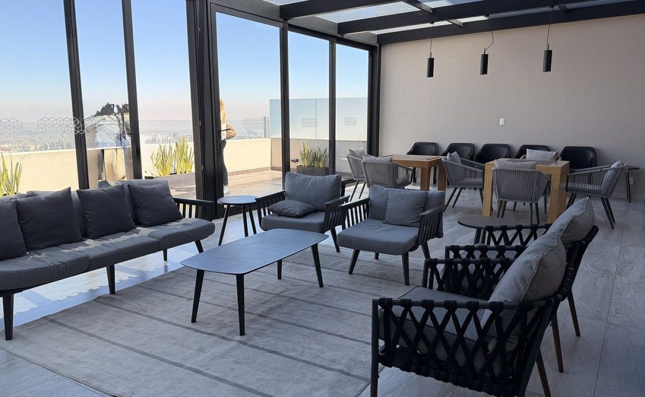 Este departamento destaca por su terraza con vistas abiertas a Santa Fe y a las montañas, lo que permite una excelente ventilación natural y una sensación de amplitud en todos los espacios.