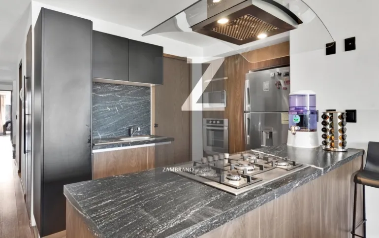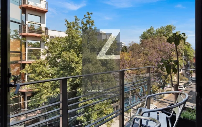 Departamento remodelado con balcón , exterior, con 2 recamaras, estudio , cocina y cuarto de servicio integrado y 2 estacionamientos.