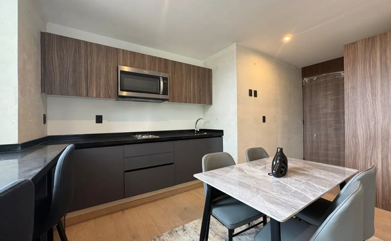 Cuenta con 1 recámara con clóset, 1 baño completo y cocina integral equipada, cuenta con excelentes acabados, Disfruta de un balcón y terraza con asador, perfectos para relajarte.