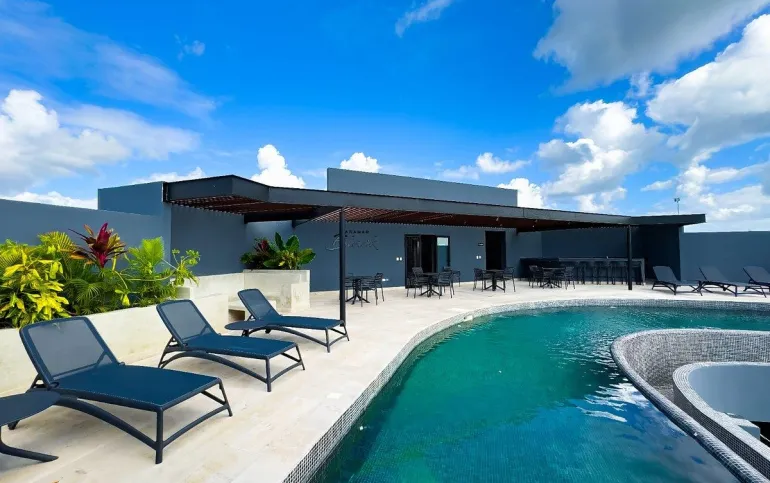 Cuenta con 2 recámaras, 2 baños, balcón, 1 cajón de estacionamiento y rooftop privado con jacuzzi, ideal para disfrutar la esencia del Caribe.