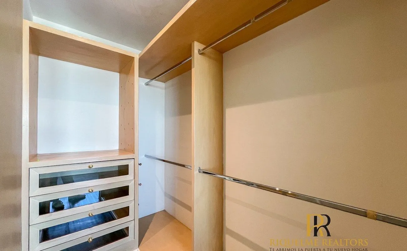 3 recámaras, cada una con vestidor y baño (Recámara principal con vestidor de gran tamaño y tina)