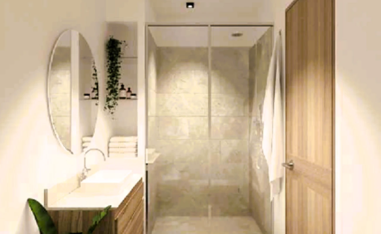 (Otros desarrollos omiten puerta y pared, que nosotros sí entregamos para dar privacidad).