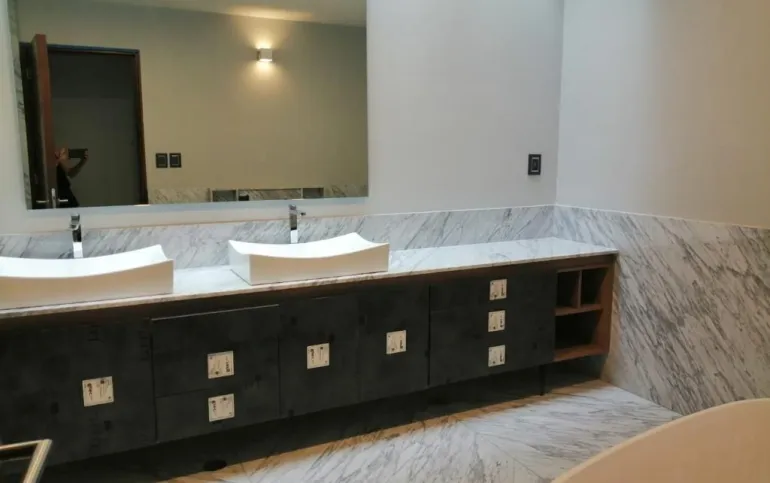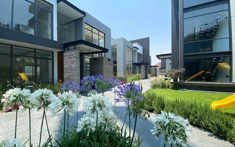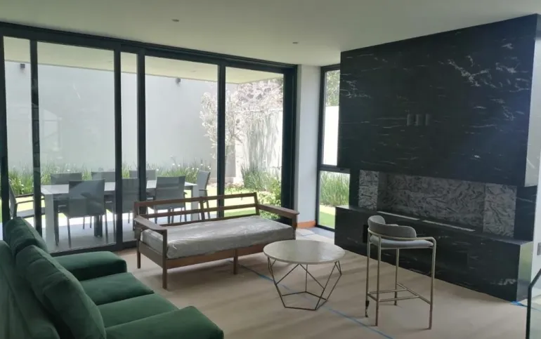 Áreas sociales con mármol italiano y maderas de ingeniería. sala y comedor con doble altura. cocina italiana con isla de 4 metros de largo con desayunador y alacena. 3 o 4 recámaras con calefacción hidrónica, todas con baño y vestidor con acabados españoles. Hermosas terrazas, family room con chimenea y cuarto de tv en planta alta. cuarto de servicio y área de lavado con acceso independiente. bodegas, closet de blancos. amplio salón de usos múltiples privativo con baño, roof garden con jacuzzi, barra y baño. Estacionamiento para 5 o 6 autos, jardín propio.