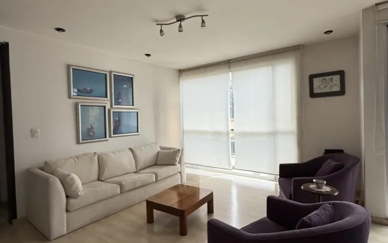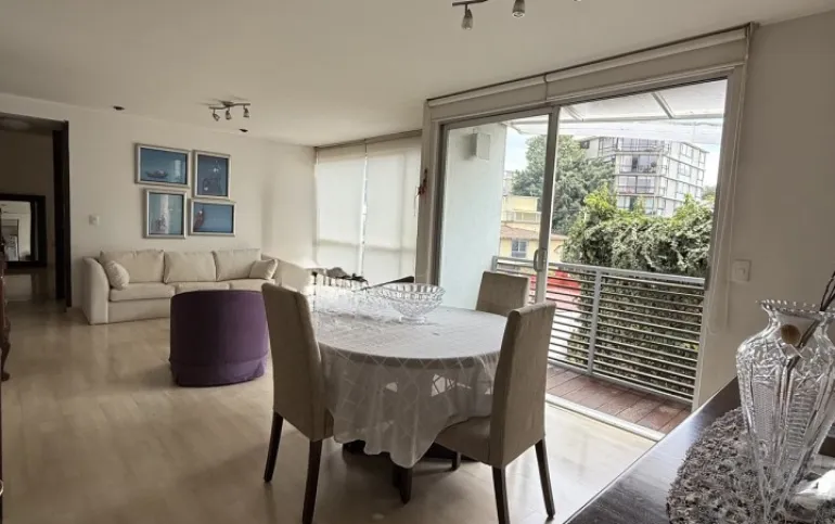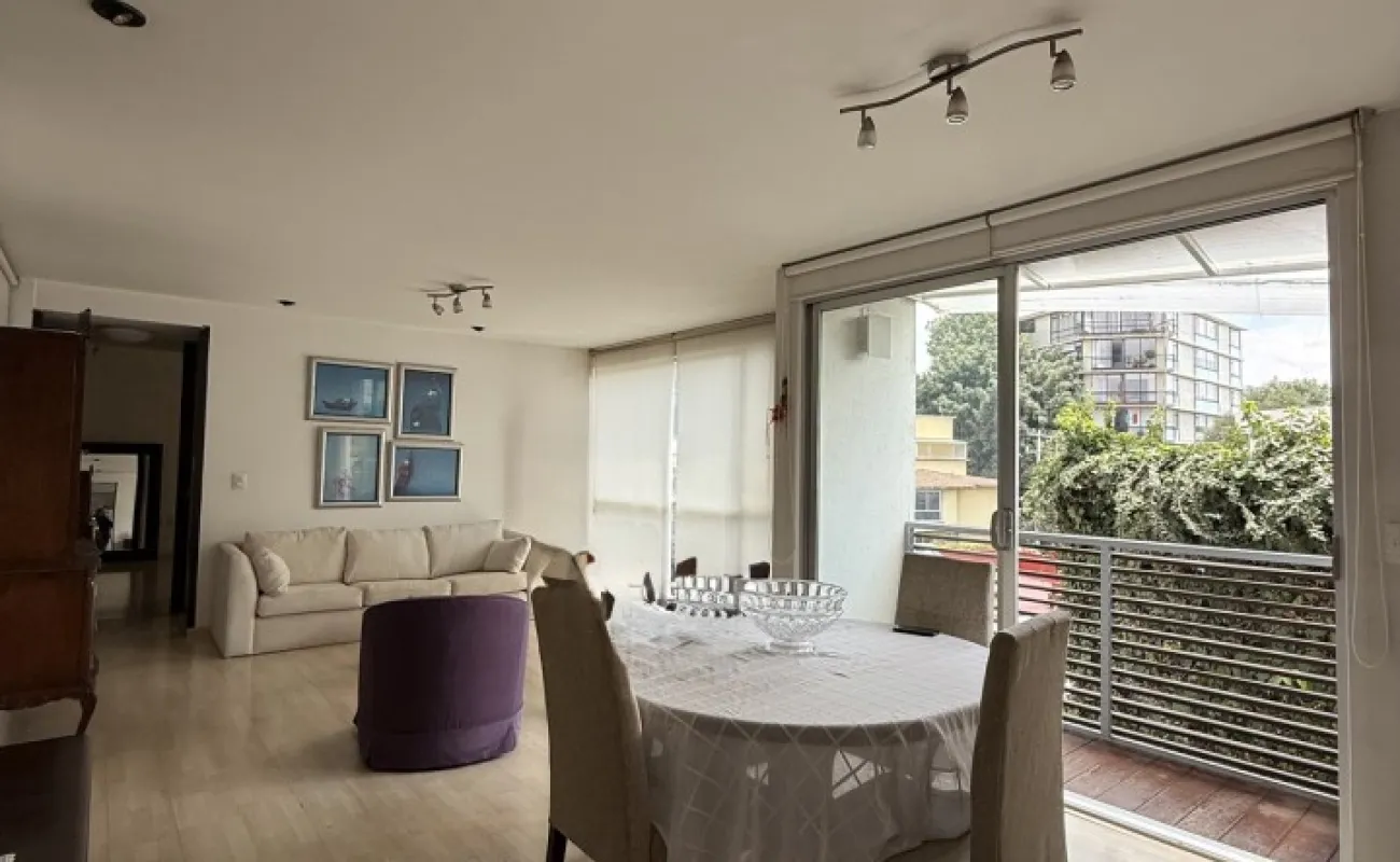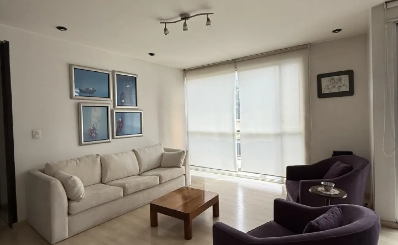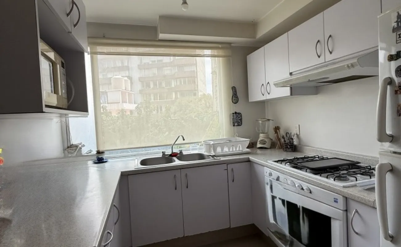 Lindo departamento muy iluminado, en San Borja, una calle arbolada y tranquila. 94 m2 2 recámaras, la principal con baño y balcón 2 baños completos. Amplia estancia con un segundo balcón Cocina espaciosa y área de lavado 1 estacionamiento Vigilancia Mantenimiento $3,000 ya incluido en el precio de la renta.