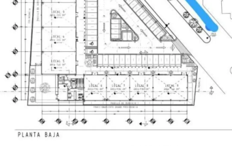 Plaza de una planta con locales,estaciinamiento y vigilancia.