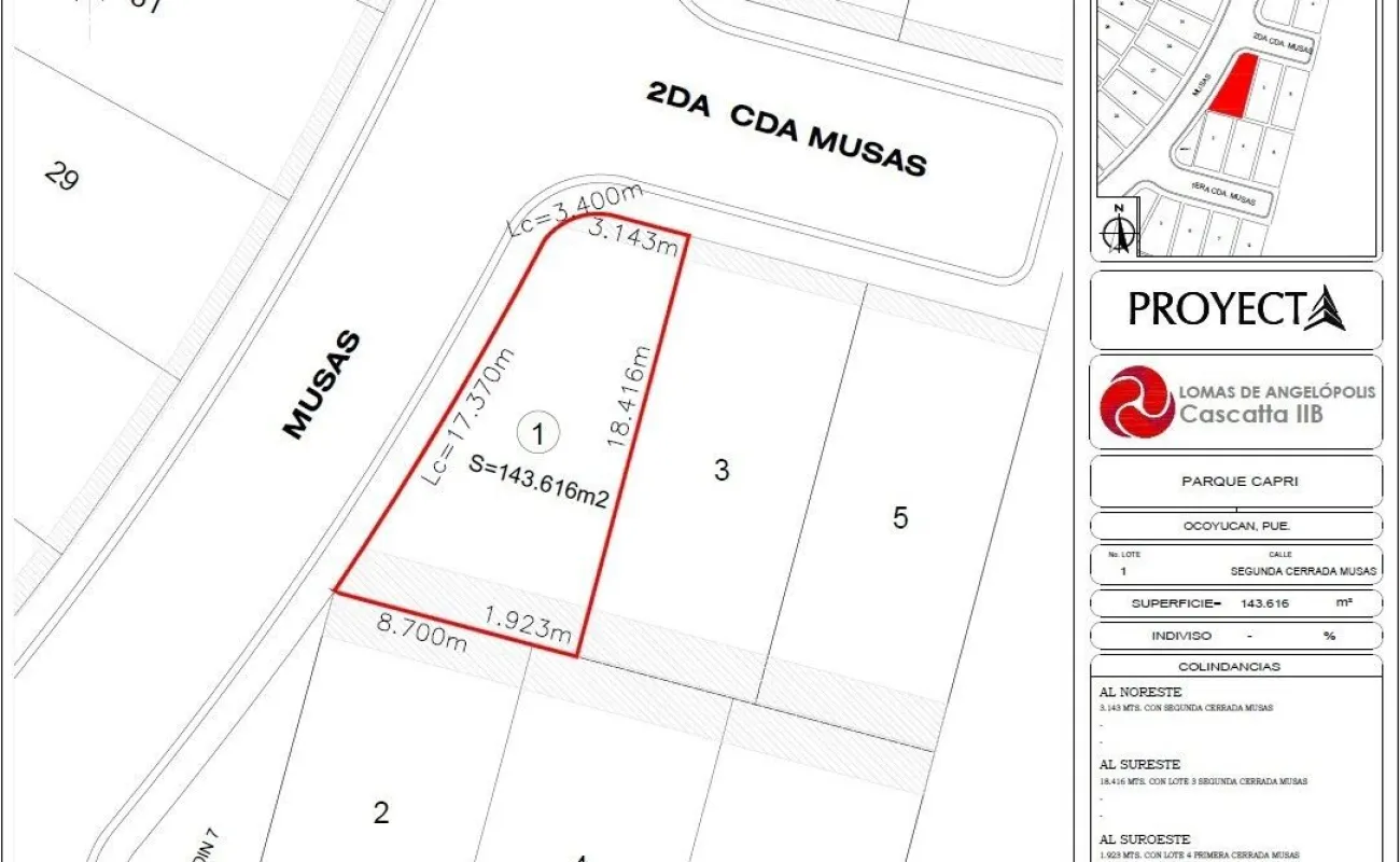 Lomas de Angelópolis tiene más de 27 parques sociales terminados, 100 hectáreas de áreas verdes, 17 km de ciclopista, más de 30 canchas deportivas y más de 180 hectáreas de vialidades, en donde vas a encontrar canchas de tenis, canchas de pádel, juegos infantiles, zona escolar, hoteles, zona comercial, acceso controlado. El lote se encuentra en el nuevo cluster Capri en Lomas de Angelópolis III.