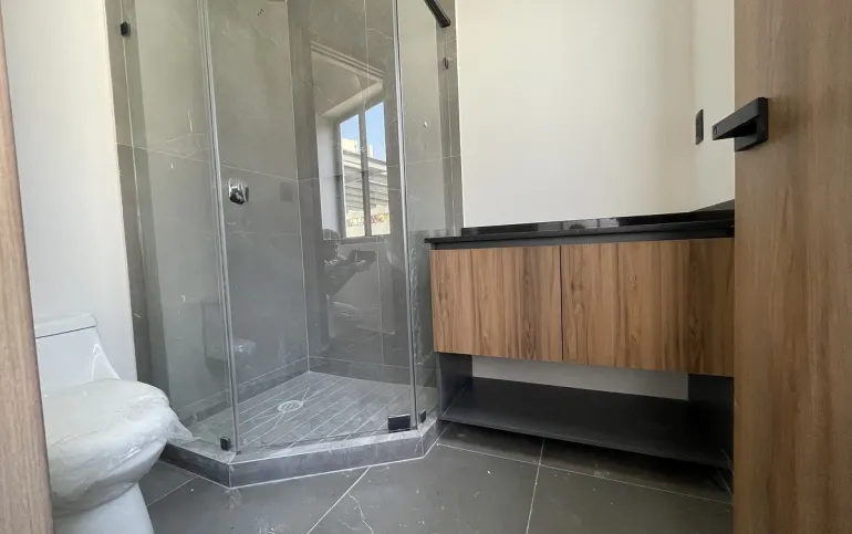Cuenta con 3 recamarás, la principal con vestidor y baño. Las otras dos comparten baño, una tiene closet y la otra no.