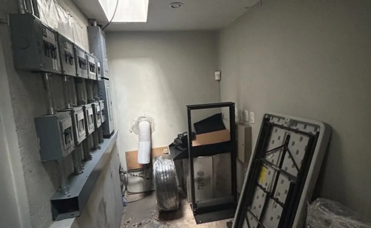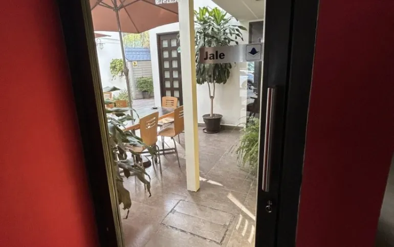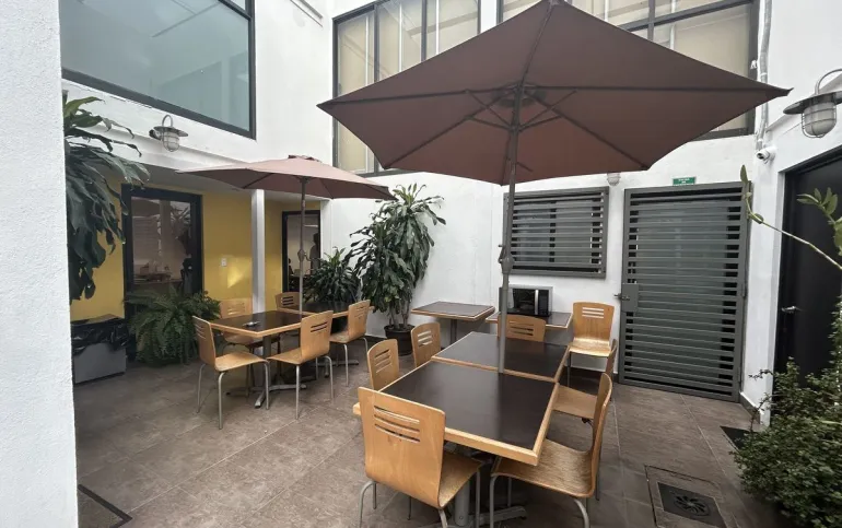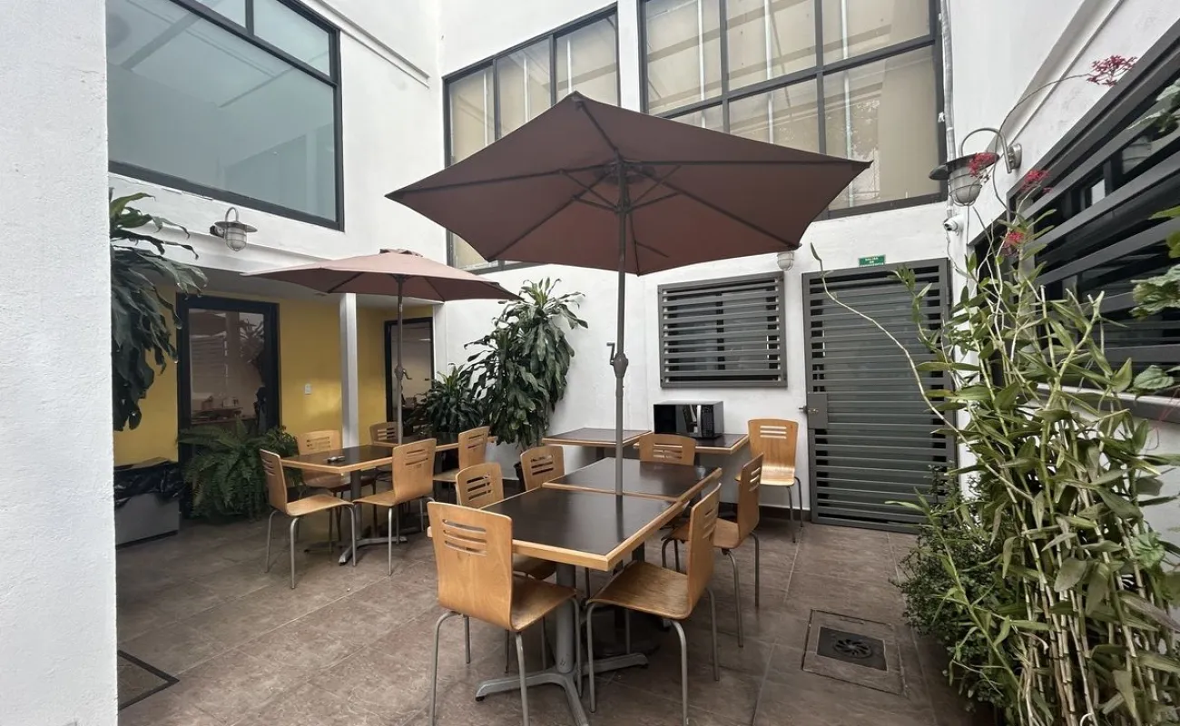 Área común de 25m2 en terraza techada para trabajar o comer el lunch, el cual se comparte solo con otro inquilino más.