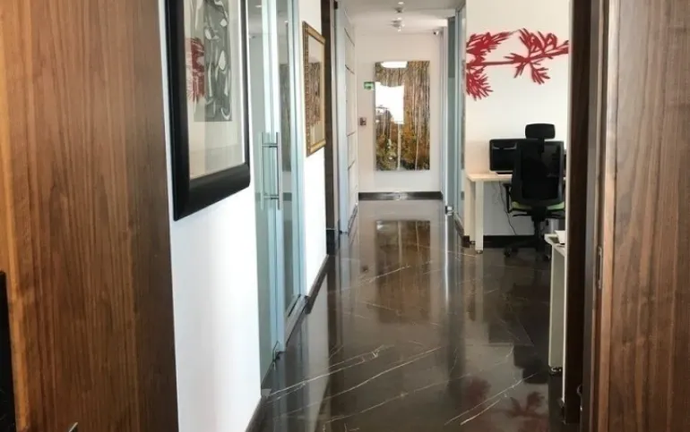 La oficina está ubicada en la Torre Infinity, edificio inteligente.