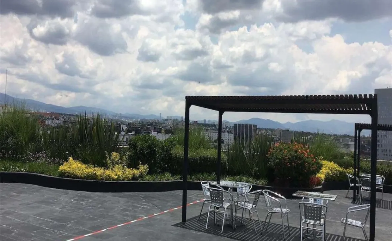 De 187 m2 con renta de $92,000 cuenta con 4 cajones de estacionamiento y baños en los entre pisos. El edificio es prácticamente nuevo, tiene 8 años de antigüedad y planta eléctrica, circuito cerrado, vigilancia las 24 horas, fibra óptica, 2 elevadores, acabados de lujo, Roof Garden común con hermosa vista panorámica.