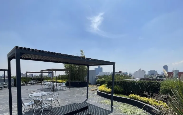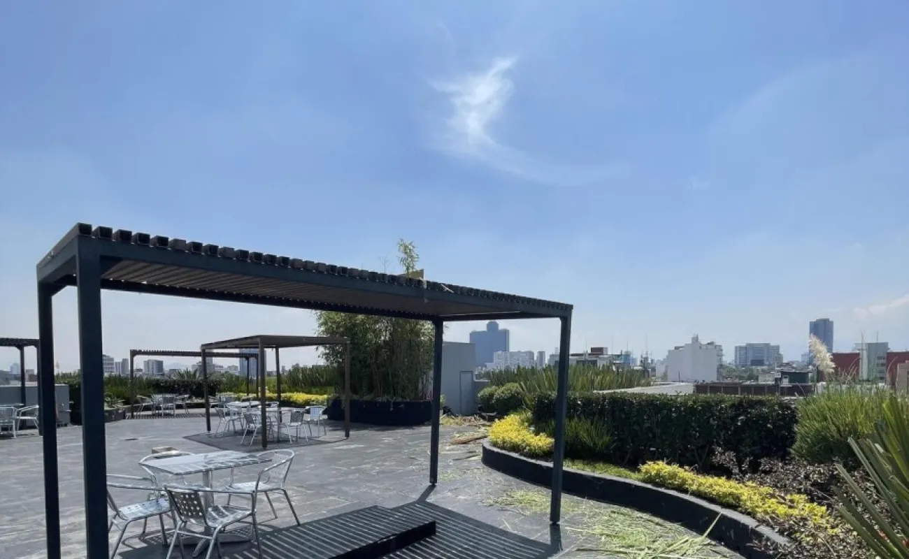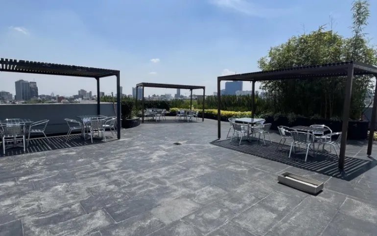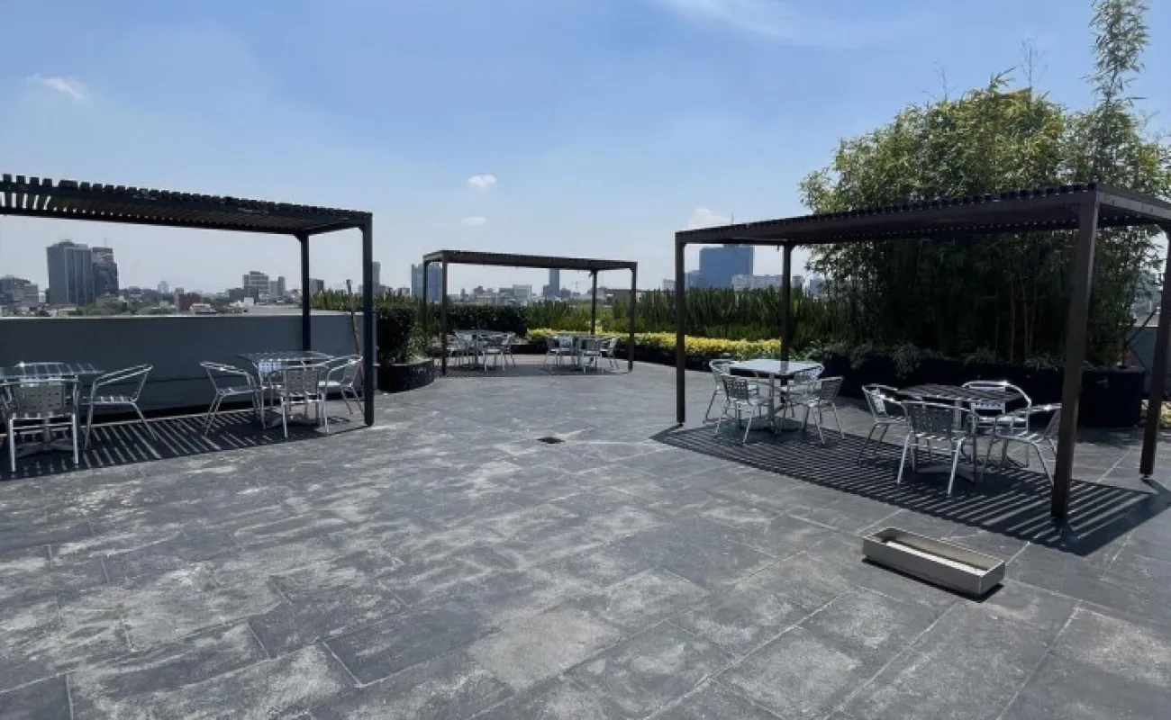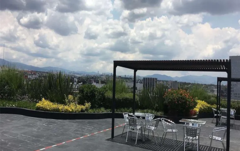 De 144m2 con renta de $74,000 cuenta con 4 cajones de estacionamiento y baño privado y baños comunes en cada pisos. El edificio es prácticamente nuevo, tiene 8 años de antigüedad y planta eléctrica, circuito cerrado, vigilancia las 24 horas, fibra óptica, 2 elevadores, acabados de lujo, Roof Garden común con hermosa vista panorámica.