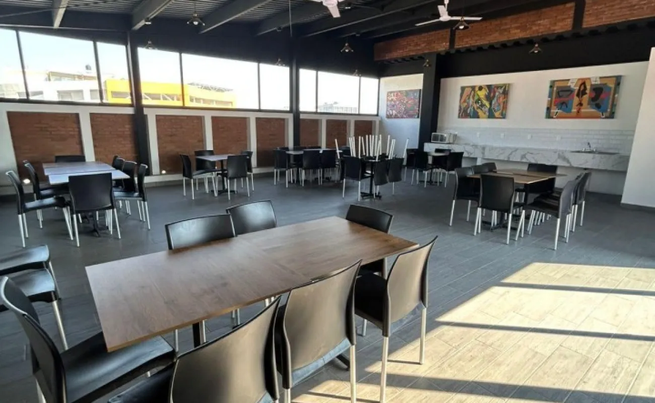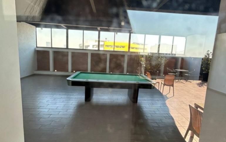 En el piso 9 se encuentran amenidades de uso común como terrazas con mesas, comedor, cancha de usos múltiples, área de juegos con pantalla y mesa de billar, así como una sala de trabajo y juntas, cuyo uso se solicita a la administración por horario o día.