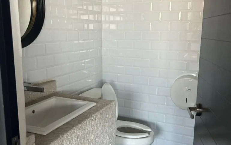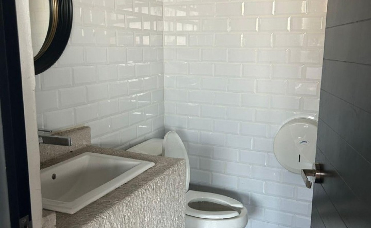 Sanitarios exclusivos del piso, divididos para hombres y mujeres, además de una tarja para limpieza en el área de servicio.