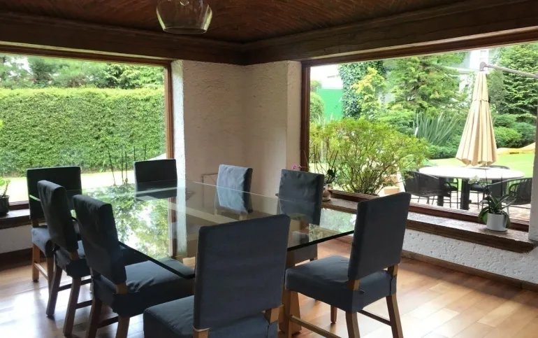 Casa del Bosque es una hermosa casa ubicada en el exclusivo fraccionamiento Rancho San Francisco. La casa se encuentra inserta en el bosque, tiene vista arbolada, espacios abiertos y luminosos. La distribución DESCRIPCIÓN - 4 recámaras con baño propio, la principal tiene vestidor. También puede ser un estudio. - Amplia sala y comedor con vista arbolada. La sala tiene chimenea y mucha luz - Recibidor y segunda sala - Comedor - Área social/ Sala de T.V/ Salón de juegos - Pequeña Oficina - Amplia Cocina con alacena - Hermoso Jardín - Patio/terraza con Fuente - Cuarto de Servicio - Bodega - 3 estacionamientos techados. 6 estacionamientos descubiertos En caso de estar interesados en la propiedad, nos pueden contactar: vía correo electrónico, WhatsApp o teléfono; para agendar una cita. Gracias Los precios publicados y la disponibilidad pueden cambiar sin previo aviso por lo que se debe de verificar con la inmobiliaria y los propietarios de los inmuebles. Los gastos e impuestos de escrituración NO están incluidos en el costo de venta, ni los avalúos. Todas las medidas enunciadas son meramente orientativas, las medidas exactas serán las que se expresen en el respectivo título de propiedad de cada inmueble La publicación de la presente información NO representa una oferta pública por lo que toda transacción debe de hacerse de forma personal de acuerdo con las prácticas comerciales de la inmobiliaria y para poder ser válida requiere de la autorización expresa de los propietarios de los inmuebles. NO incluye mobiliario, arte o cualquier elemento de ornamentación o decoración en el inmueble. GDPT