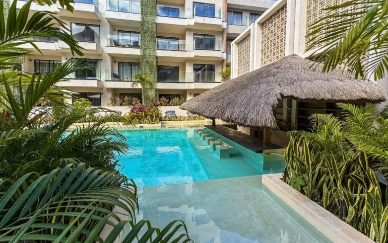 • 2 Albercas, una en PB y otra infinity pool en el Rooftop con vista a la gran Reserva del Jaguar.