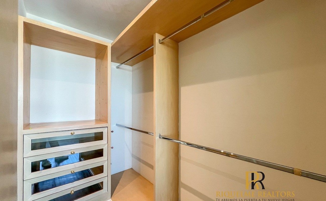 3 recámaras, cada una con vestidor y baño (Recámara principal con vestidor de gran tamaño y baño con tina)
